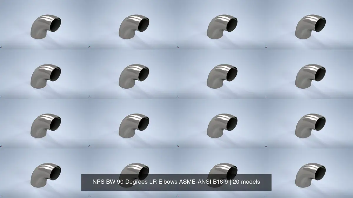 This collection pack contains all the standardised NPS BW 90 Degrees LR elbows governed by ANSI/ASME B16.9: