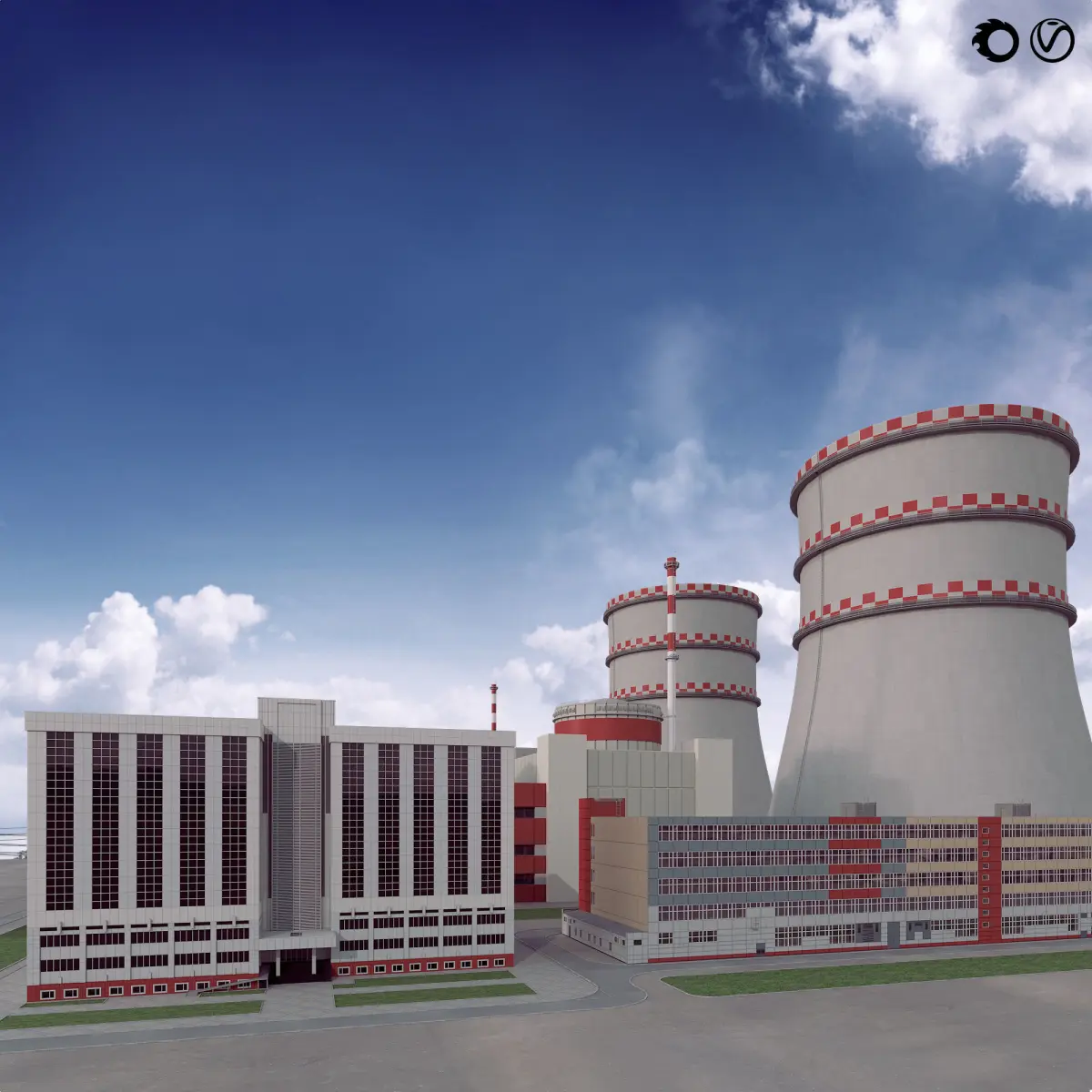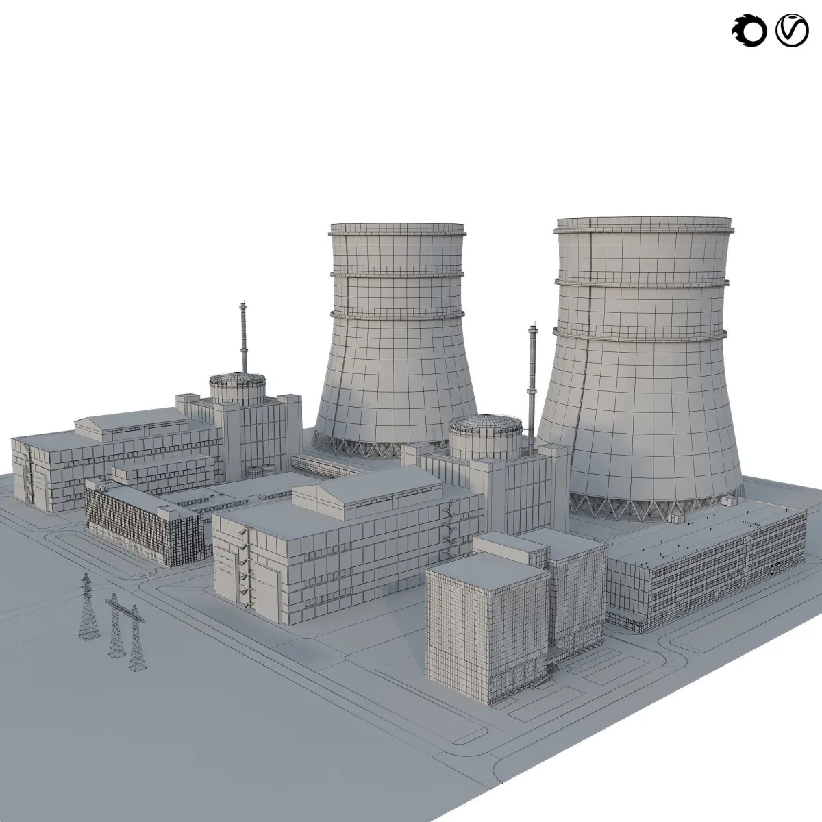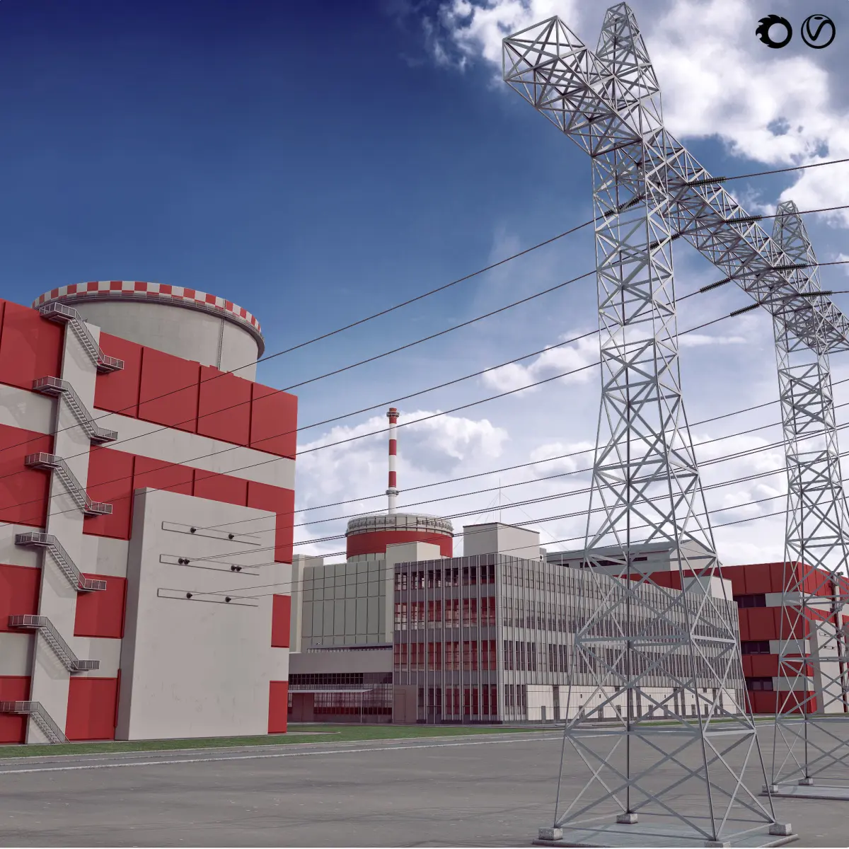 Corona | Vray FBXNuclear power plant NPP CHP energy industry production workshop, havod cooling tower tower pipe energy plant electric poles pole wire complex