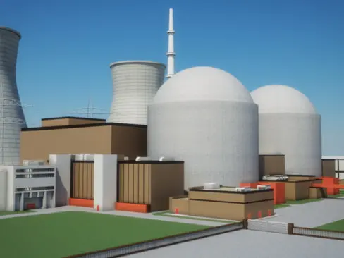 Complete high detail nuclear power plant. Mutliple textured buildings with roof details, modeled doors and windows. Also including details like cooling towers with ladders, electric power poles, transformers, water tanks and chimneys.