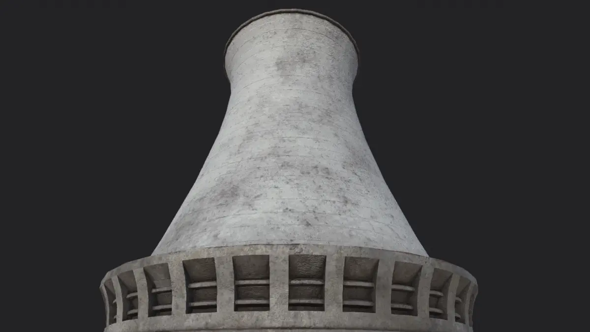 Detailed Old Nuclear Power Plant Chimney with High-Quality PBR Texturing