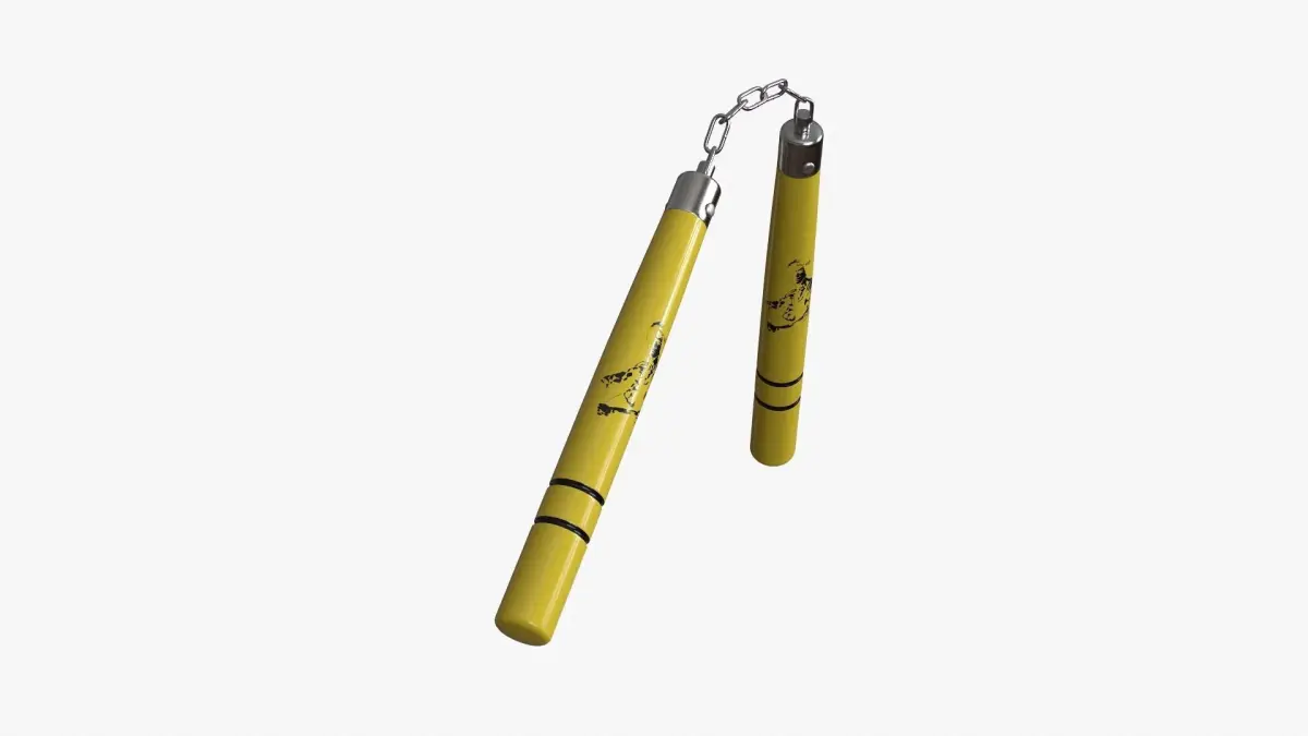 3d model of a Nunchaku for using in handheld weapon. It can be animated as an melee attacking weapon in games and many other render scenes.