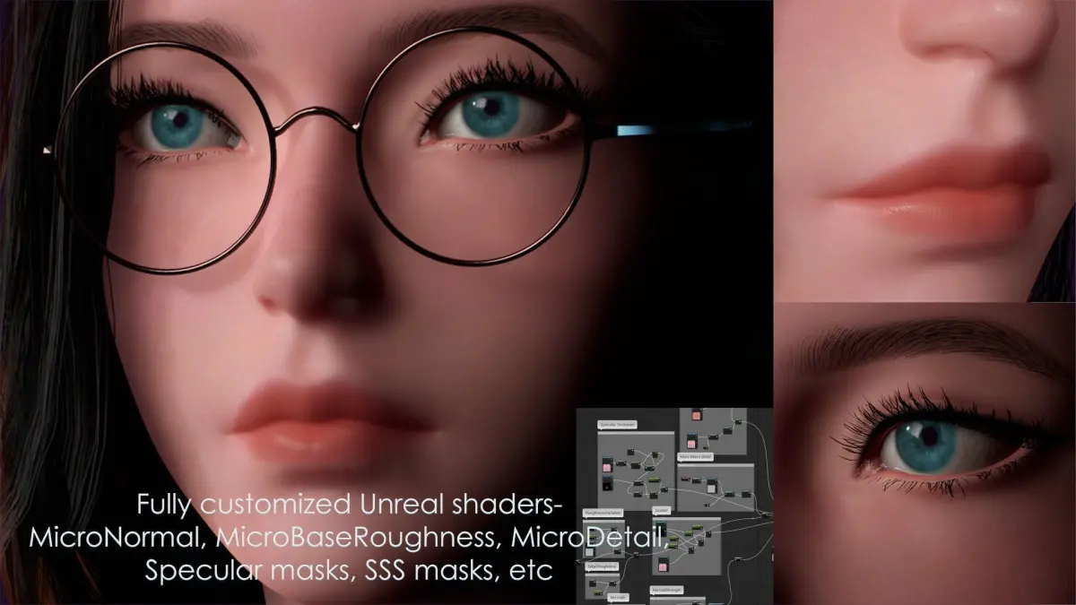 +You can change the color of skin, eyes, hair (Instances of materials are configured, so you can easily control a lot of material parameters )