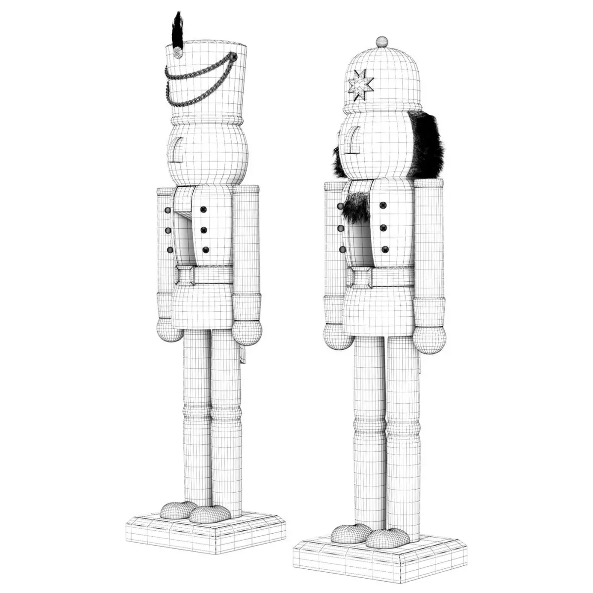 Nutcracker figures Hussar and Policeman. PBR 4k textures. Mesh hair