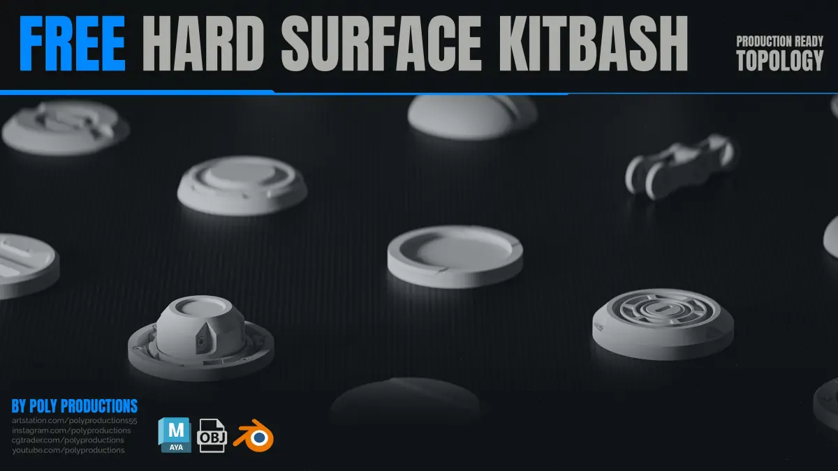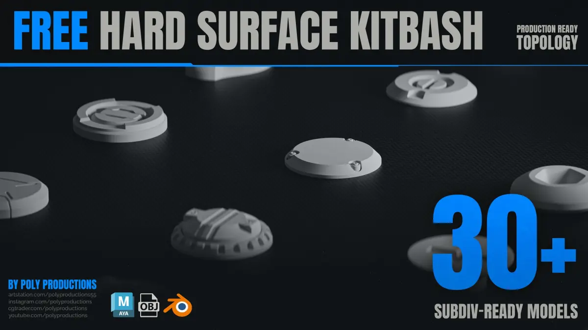 • All parts in this Kitbash collection are around 2k-6k quads depending on complexity. • All Parts are uv mapped. • All Parts are subdividable. • All Parts work as midpoly with soft normals. • Parts are kept simple on purpose to keep the polycont low and to make the parts easier to modify. • Use in any software such as Blender,Zbrush,Maya, 3dsmax, Substance Painter... • You can use this product for any commercial and non-commercial use. • Please don't try to reupload this product.