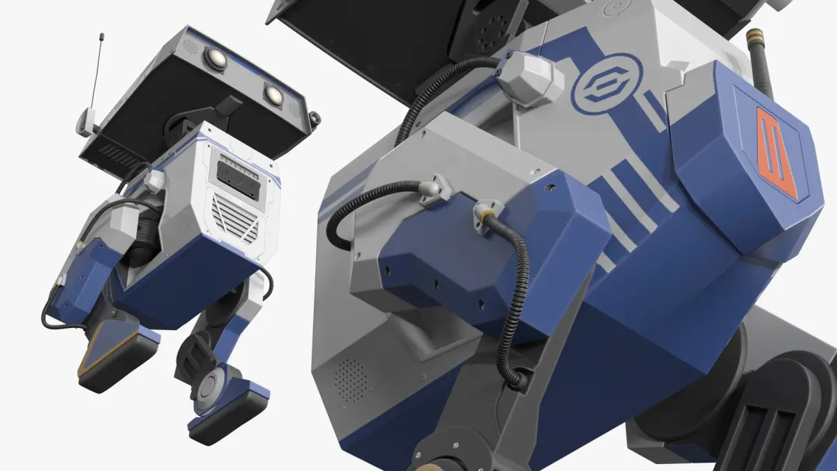 Nvidia Service Bipedal Robot White Blue is a three-dimensional model of Nvidia Walking Assistant Bipedal Bot which is the Nvidia Service Bipedal Robot (AI Assistant Bipedal Mech Unit that is a Nvidia Sensor Scout Robot).