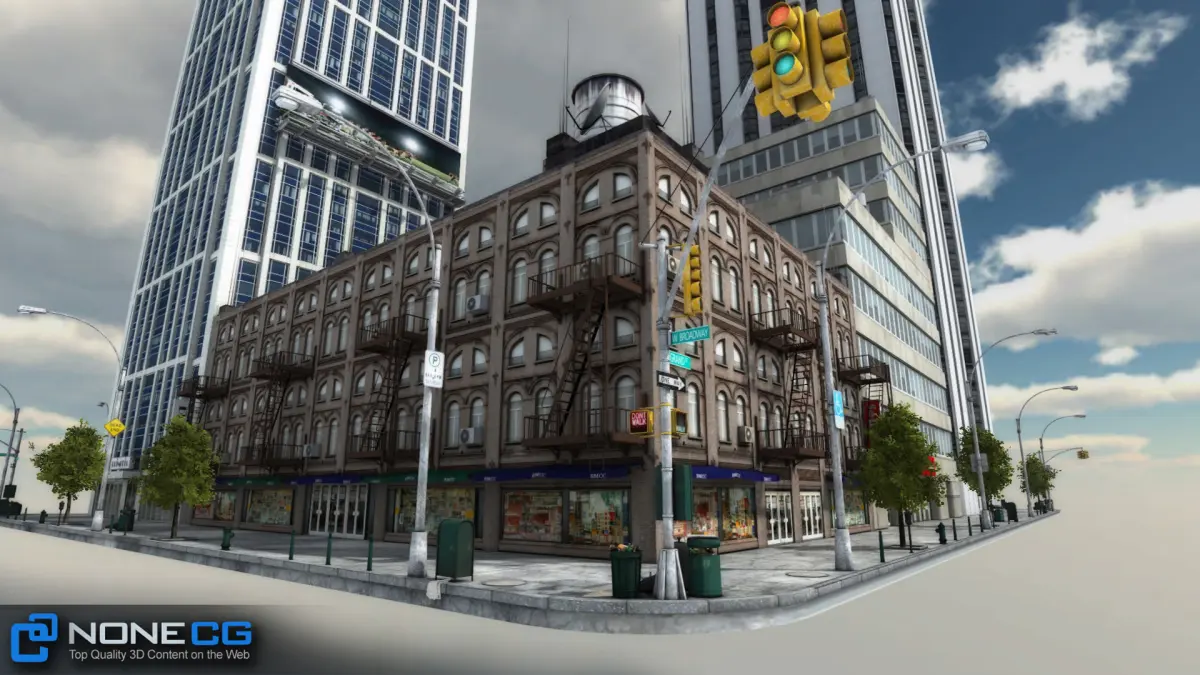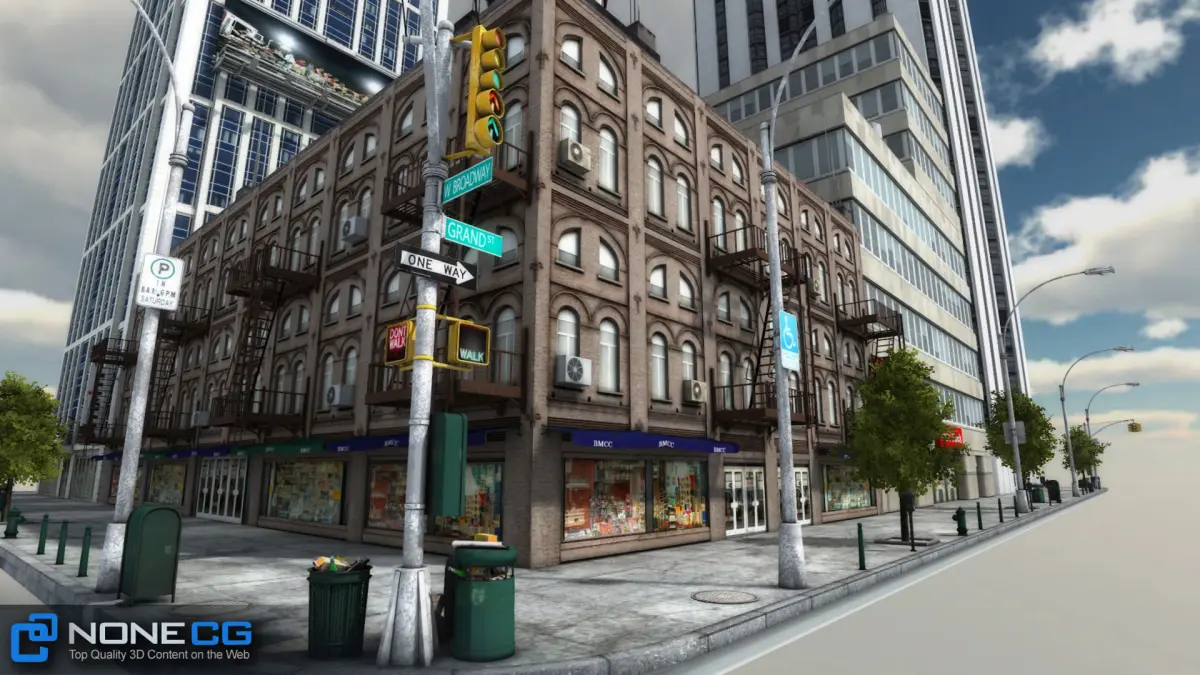 Realistic New York City blockThis set is composed by 9 buildings in 1 blockThis asset contains: