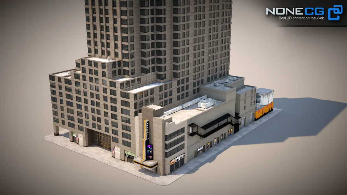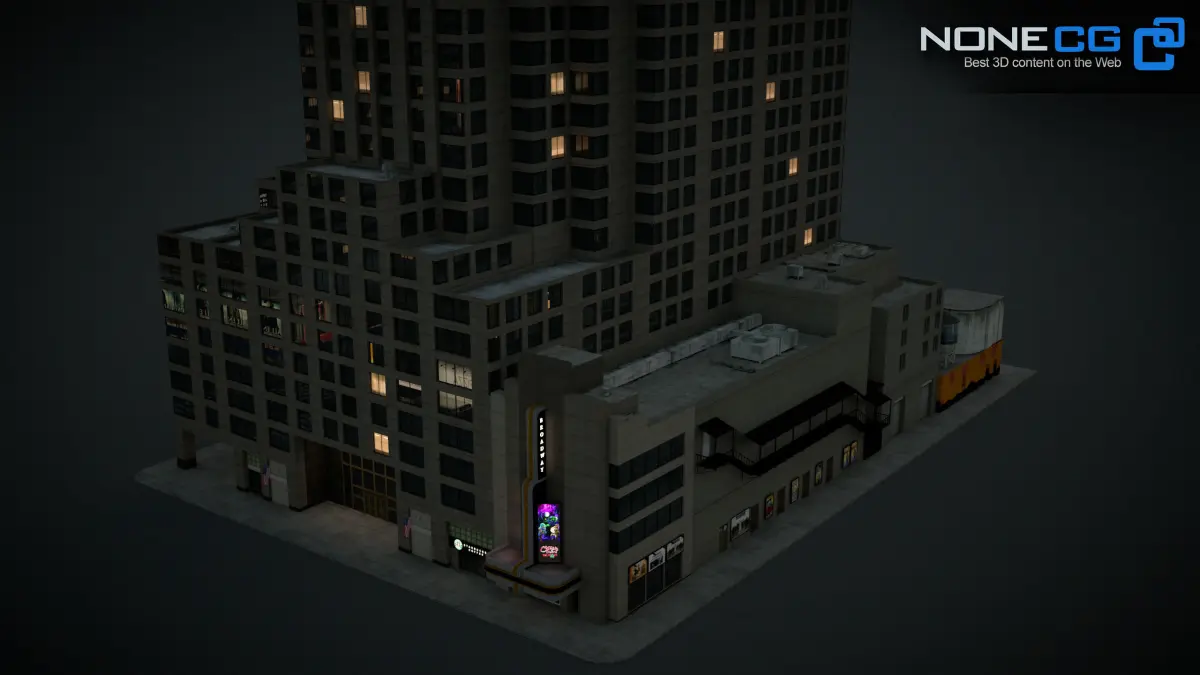 Realistic 1685 Broadway Theater Building 3D model with billboards and animated nightlights and windows.UV mapped and textured with high resolution maps.