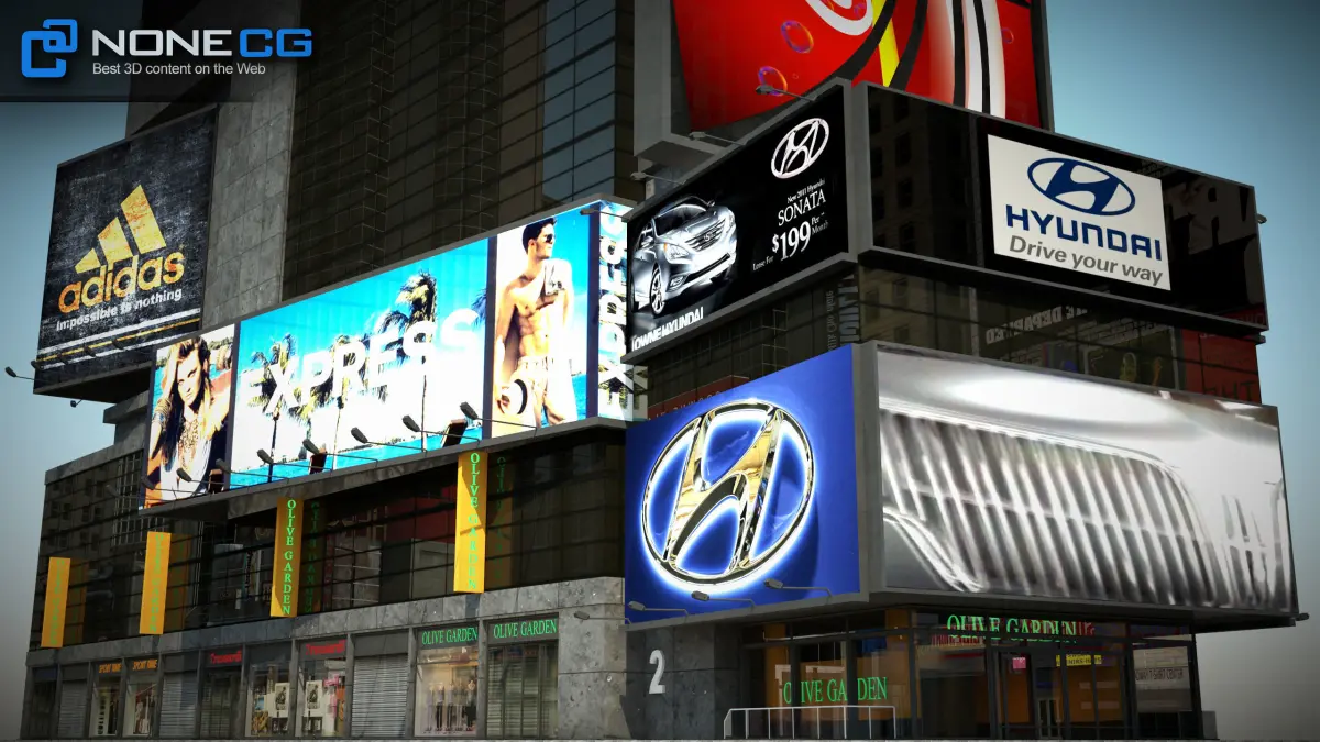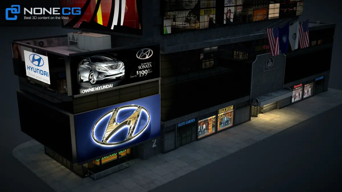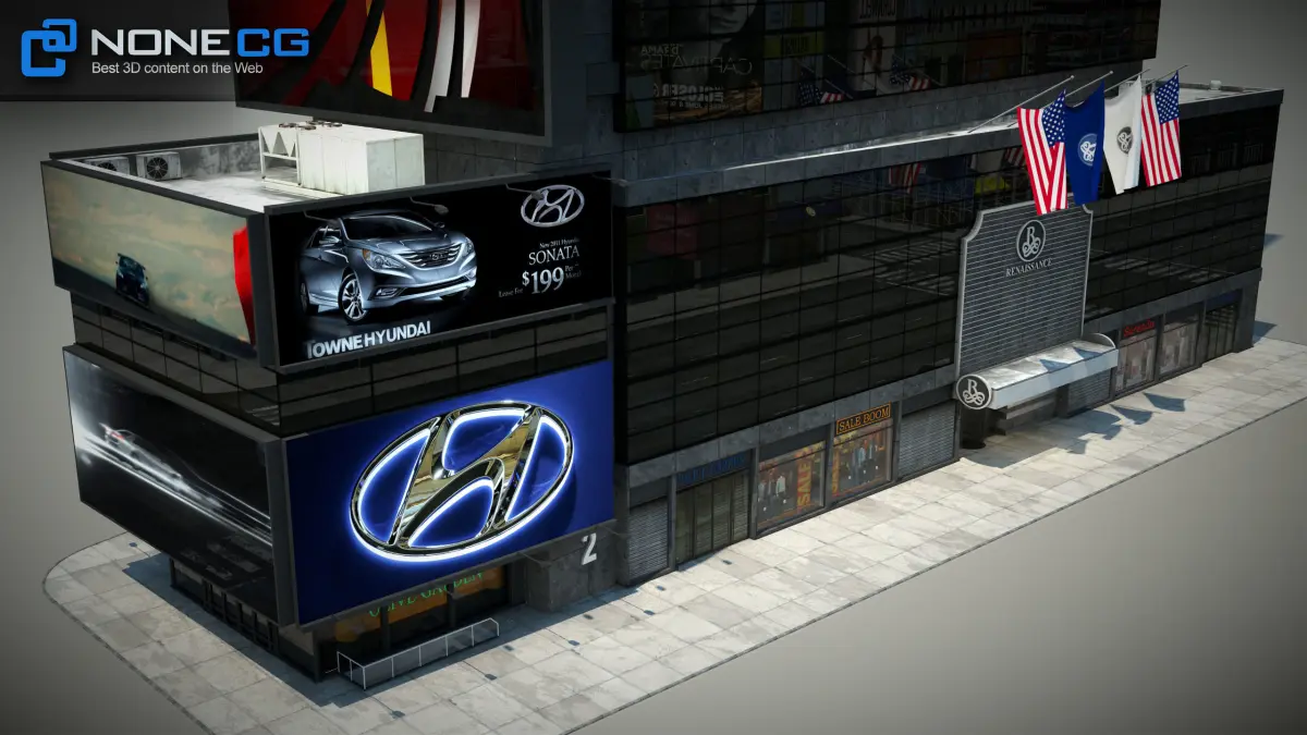 Realistic Ramada Renaissance Building 3D model with billboards and animated nightlights and windows.UV mapped and textured with high resolution maps.