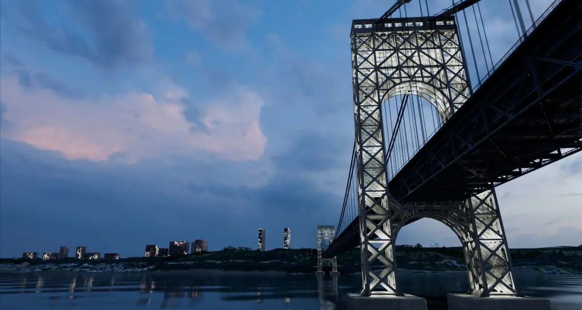 A detailed recreation of the famous bridge that connects New York City to Fort Lee in Bergen County.