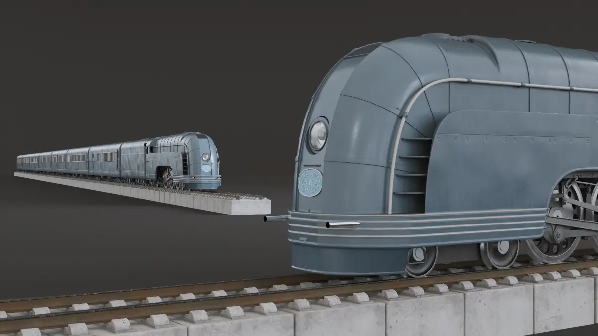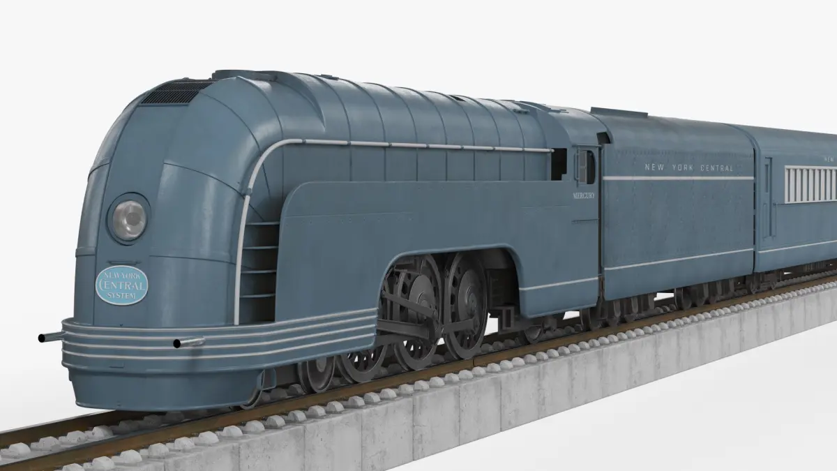 NYC Mercury Train with Railroad is a three-dimensional model of the New York Central Mercury Train, a streamlined passenger train that symbolized modern rail travel in the 1930s United States.