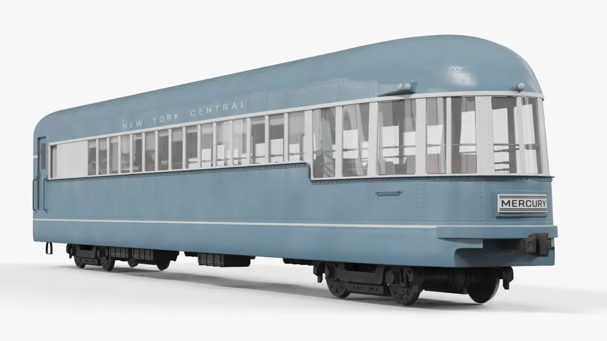 NYC Observation Train Car is a three-dimensional model of type car component of the New York Central Mercury Train, a streamlined passenger train that symbolized modern rail travel in the 1930s United States.