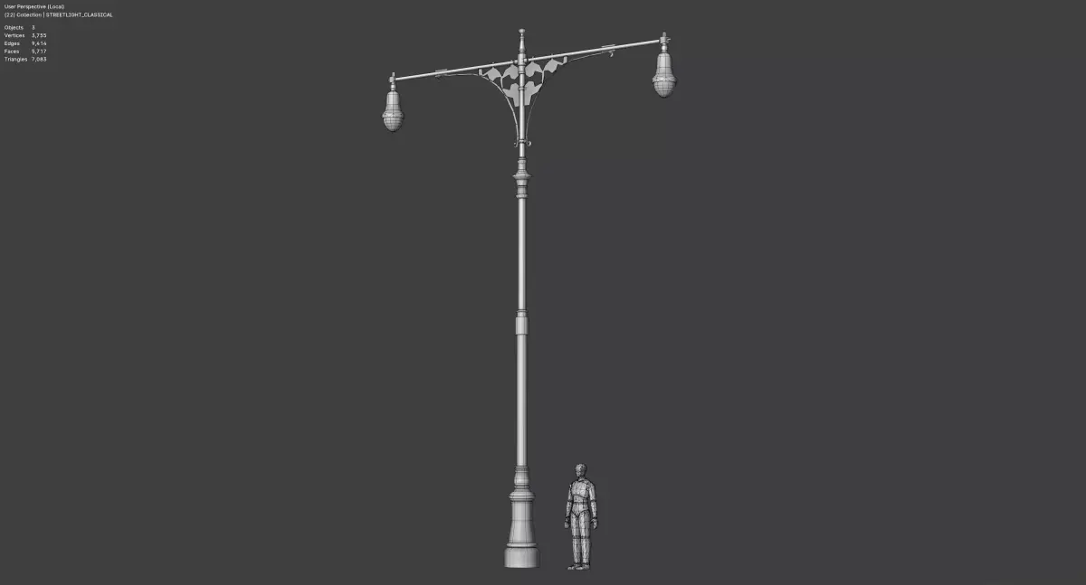 - Blender file organizes the streetlights into collections according to their type.