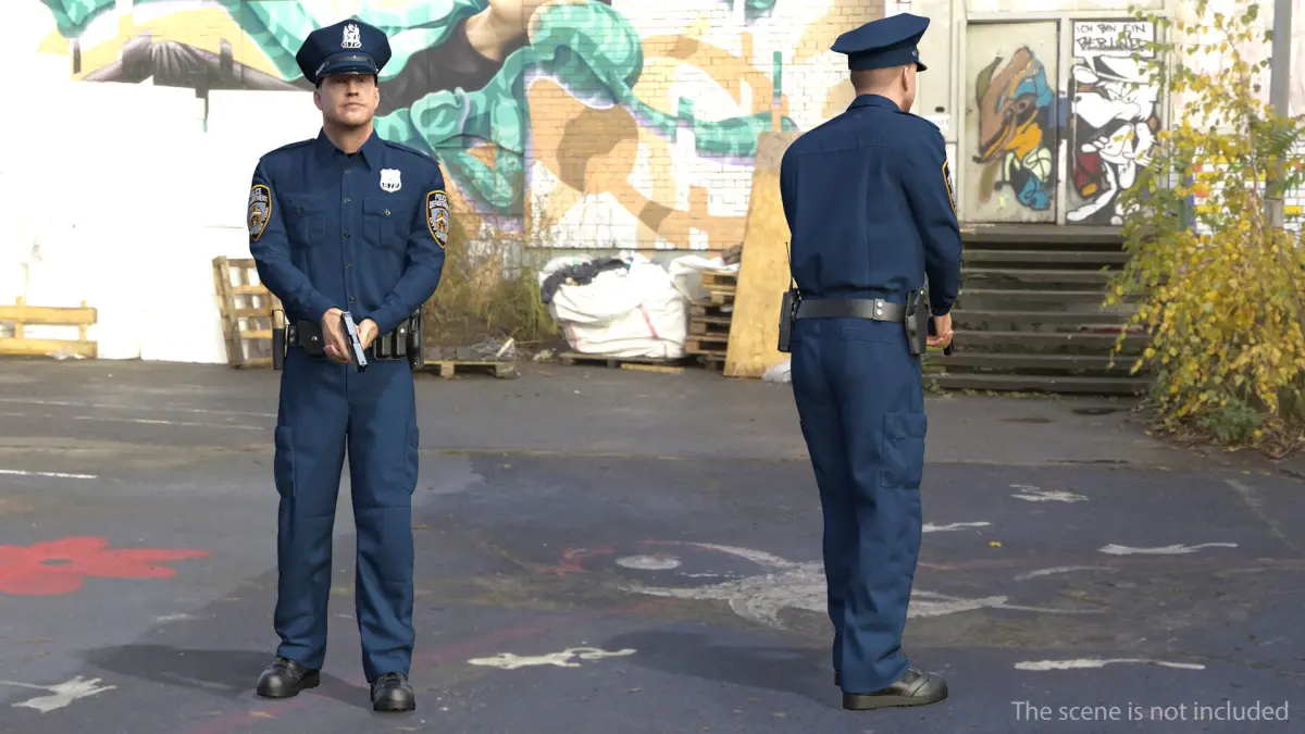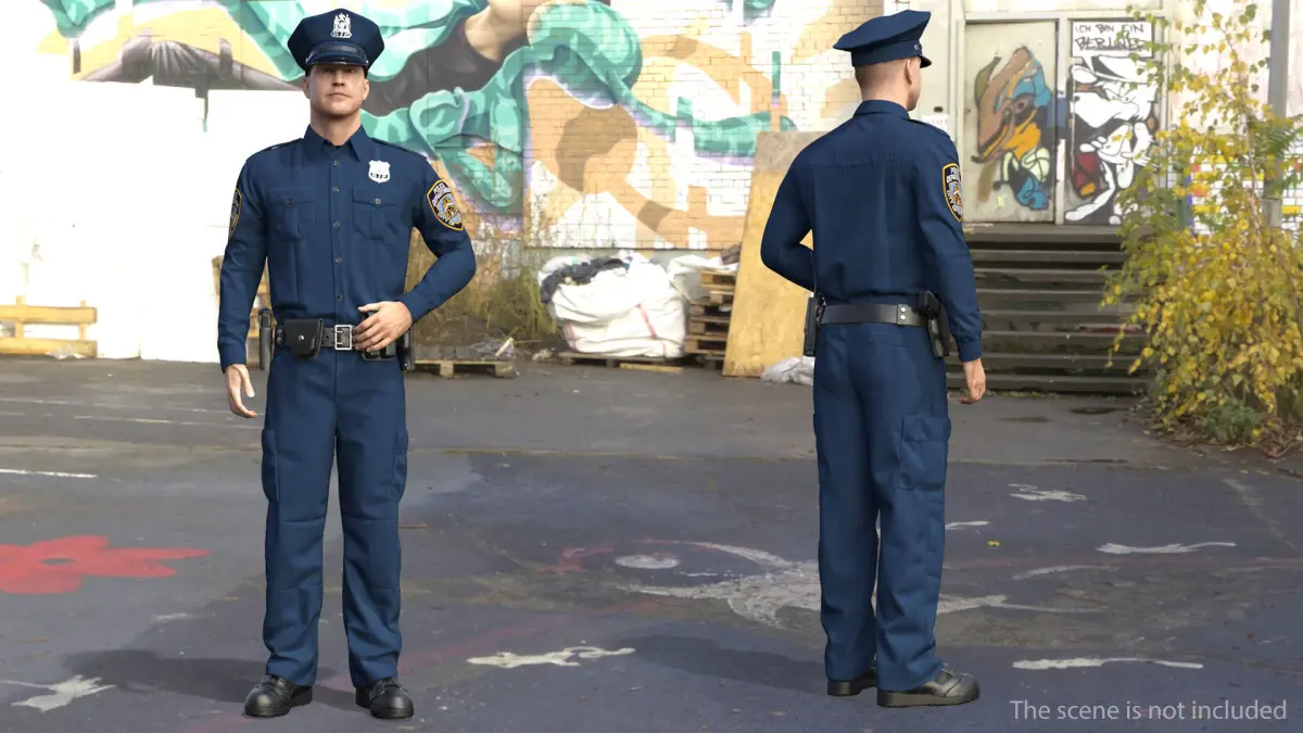 NYPD Police Officer Fur Rigged is fully rigged and is ready to be animated. You can easily position it the way you need or animate it the way your project requires using helpers in 3D Studio Max. The pose of the model on the render images is an example and can be recreated using rig, it is not initially included into the product.