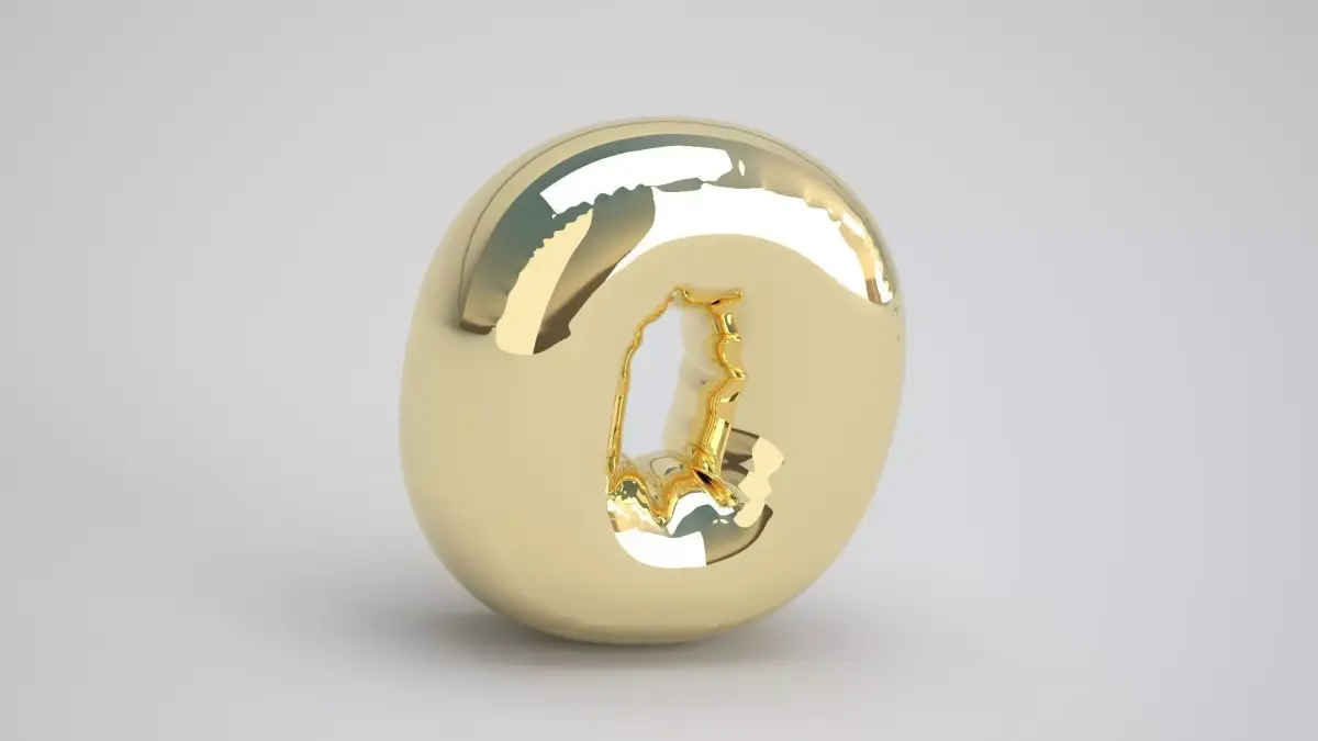 Realistic 3D Model OF Balloon O Alphabet Gold