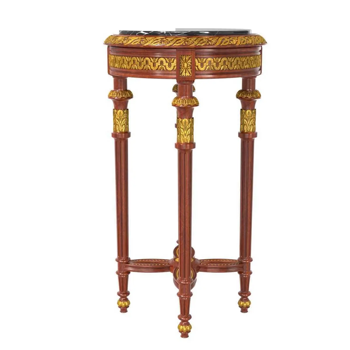 Oak it small side tablenero st laurent marble topsizediameter 45cmH = 80 cmround circle table brown wood finish gold leaf patina decor floral motif style decorclassic style historic antique four legs