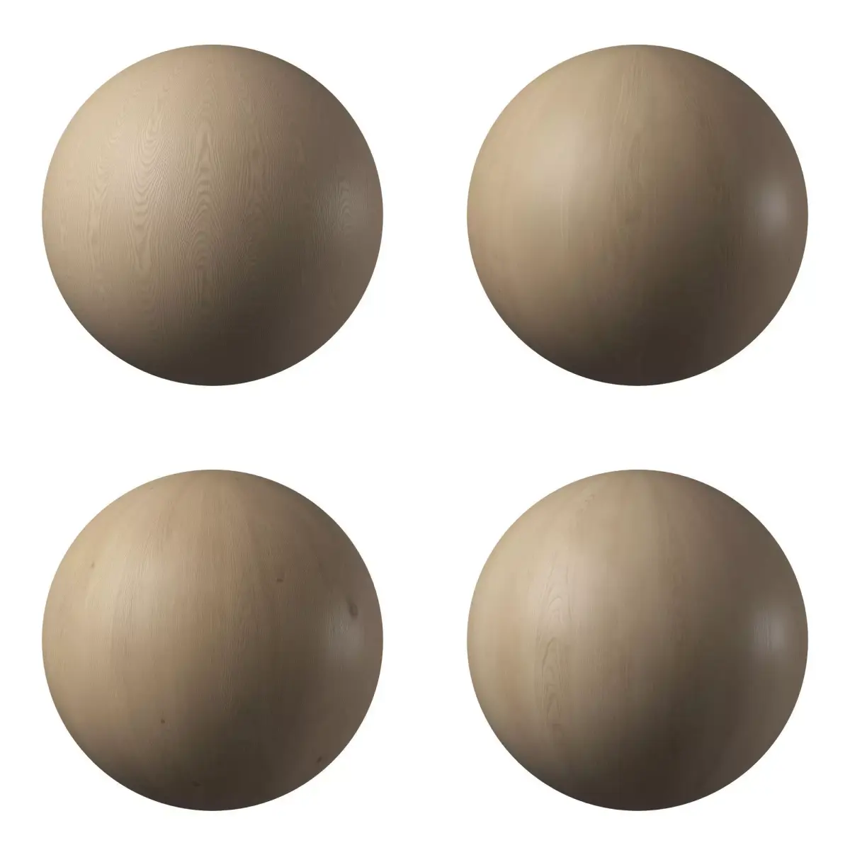 4 seamless Oak textures with different grain structures (4 PBR wood materials).