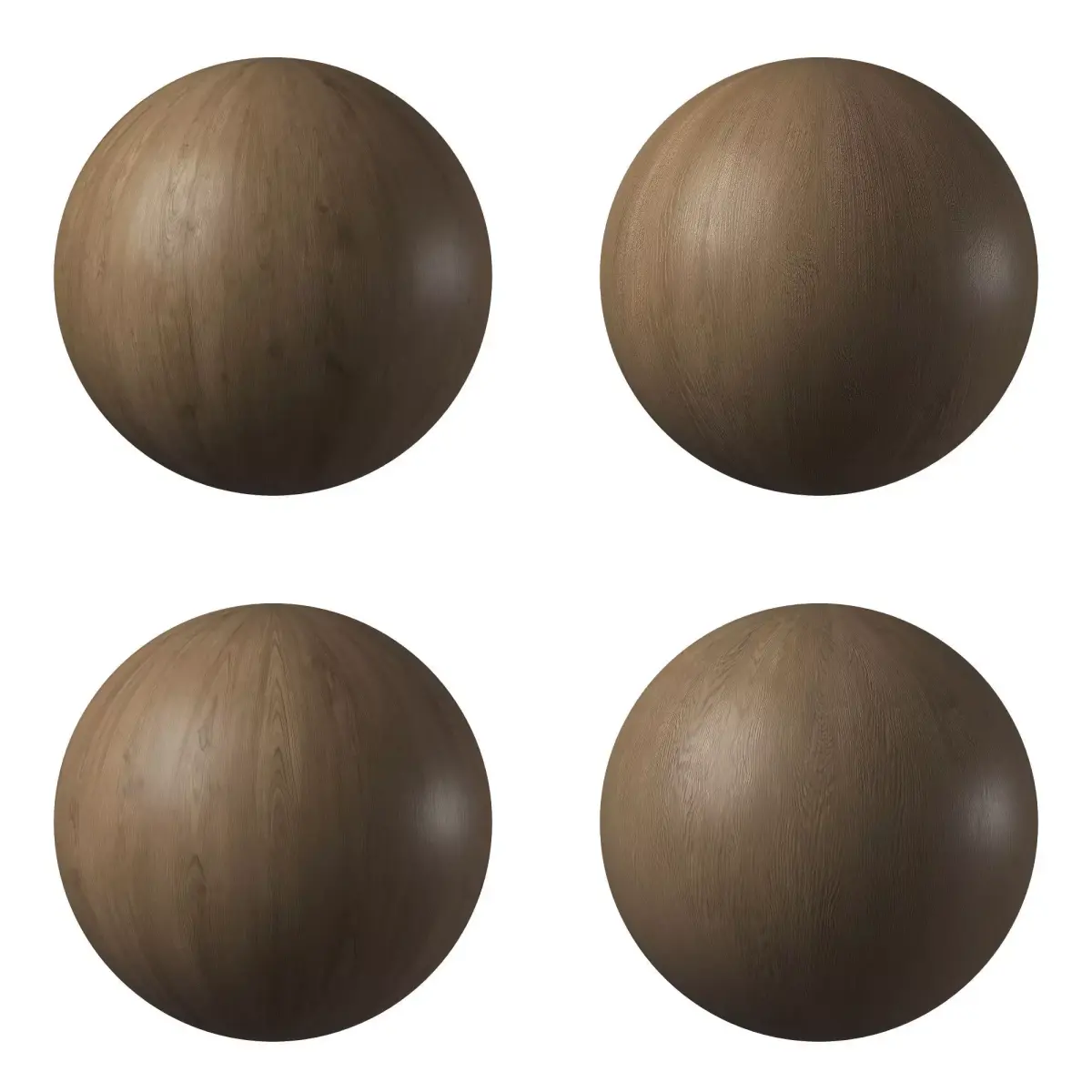 4 seamless Oak textures with different grain structures (4 PBR wood materials).