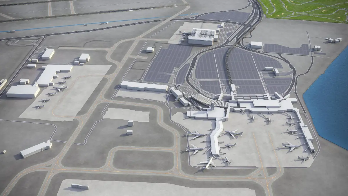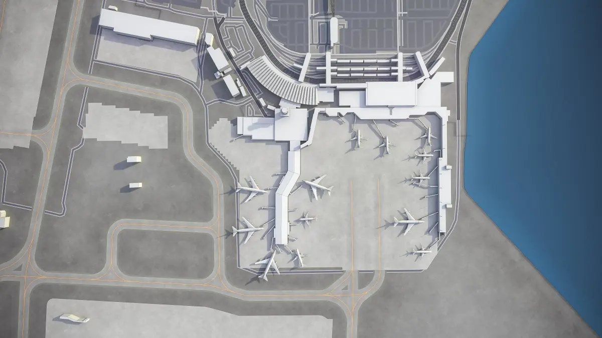 This is exact and accurate to-scale 3D model of Oakland International Airport - OAK and its surrounding area based on GIS data (May 2020)