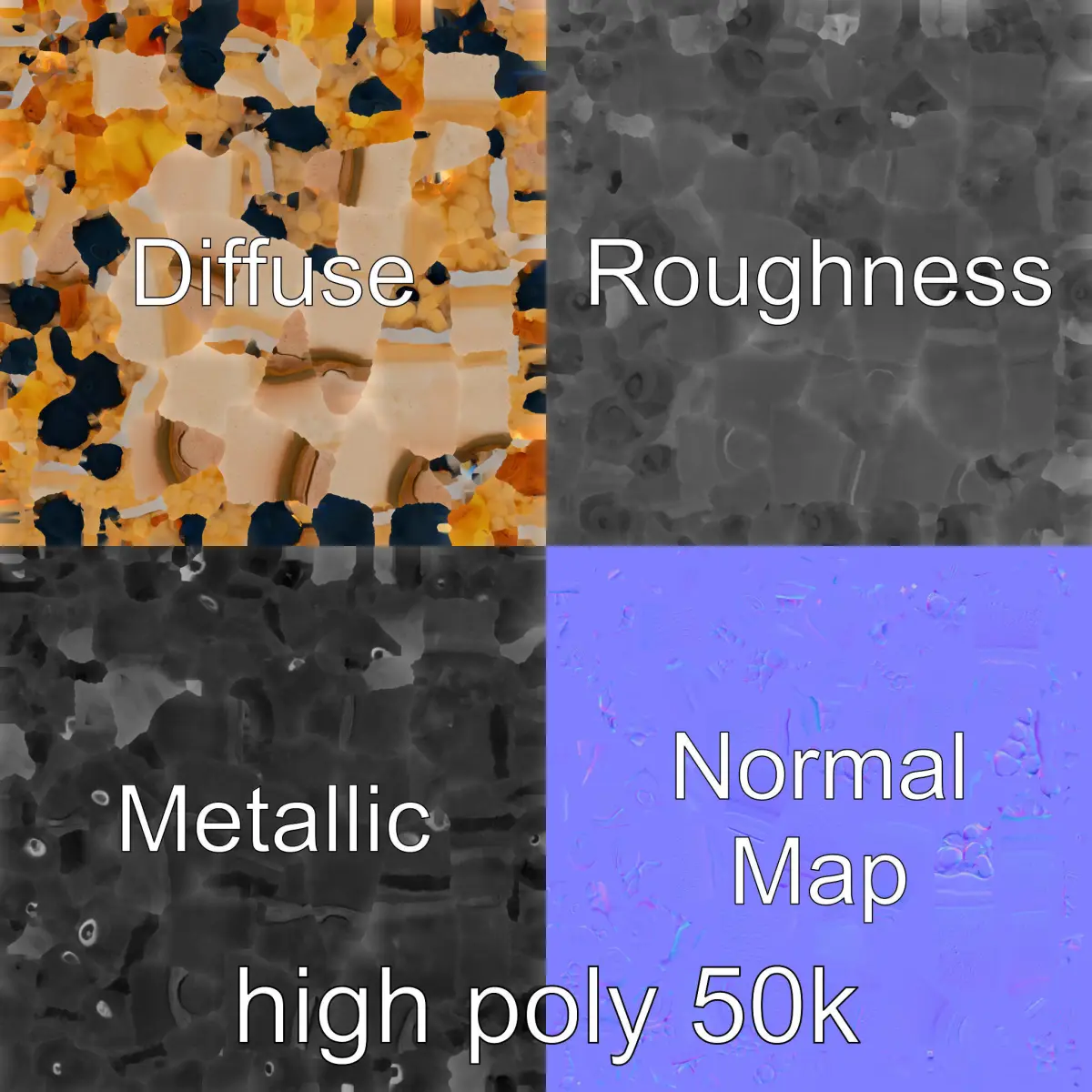 The model's textures are PBR, including Diffuse, NormalMap, and reflection/roughness/metallic, which are suitable for any modern rendering engine. All models are accurately unwrapped with no overlapping UVs.