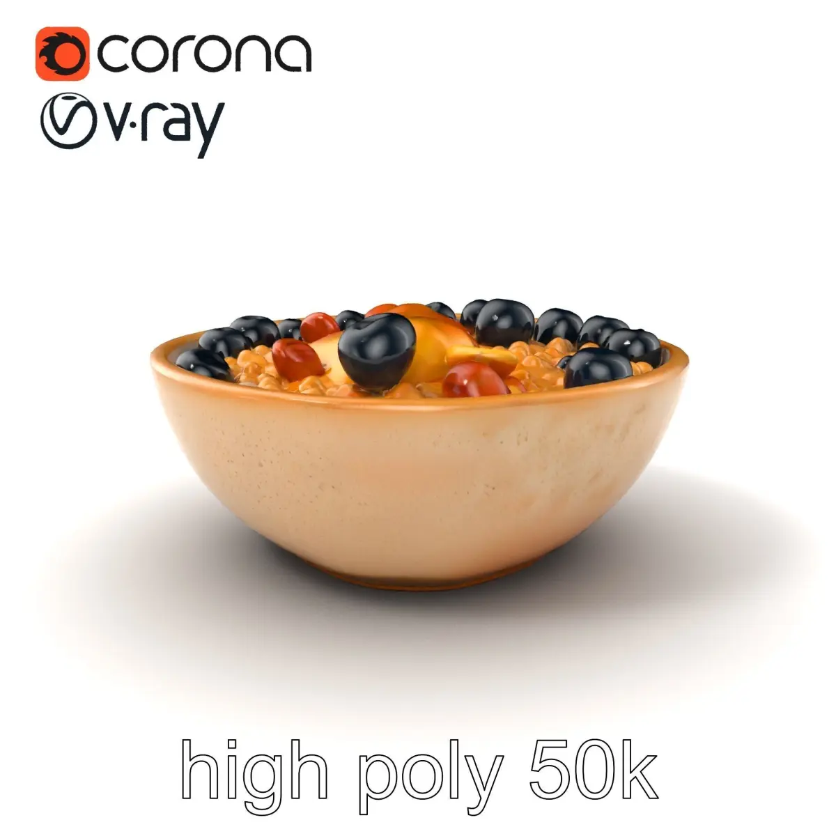 This model is perfect for scenes depicting breakfast settings, food advertisements, or health-focused applications. The enticingly realistic rendering captures the texture of the oatmeal, the gloss of the honey, and the freshness of the blueberries.