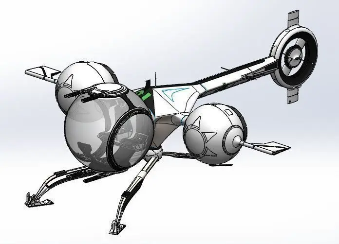 This is the futuristic copter from the Si-Fi movie Oblivion.It is an assembly consist of a lot of seperate part designed in SolidworksParts are seperate so the material can be applied seperately as per the requirementsIt can be used in any type of animationAvailable Formats:-sldasm-stl-obj-step-iges