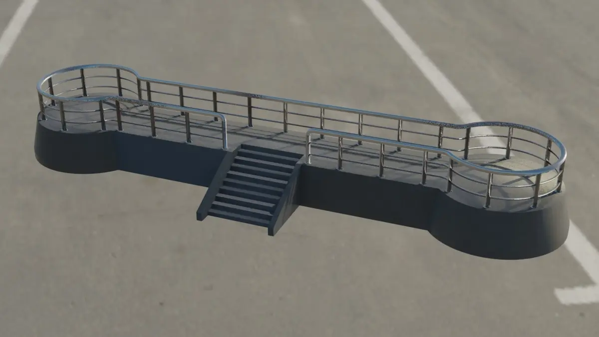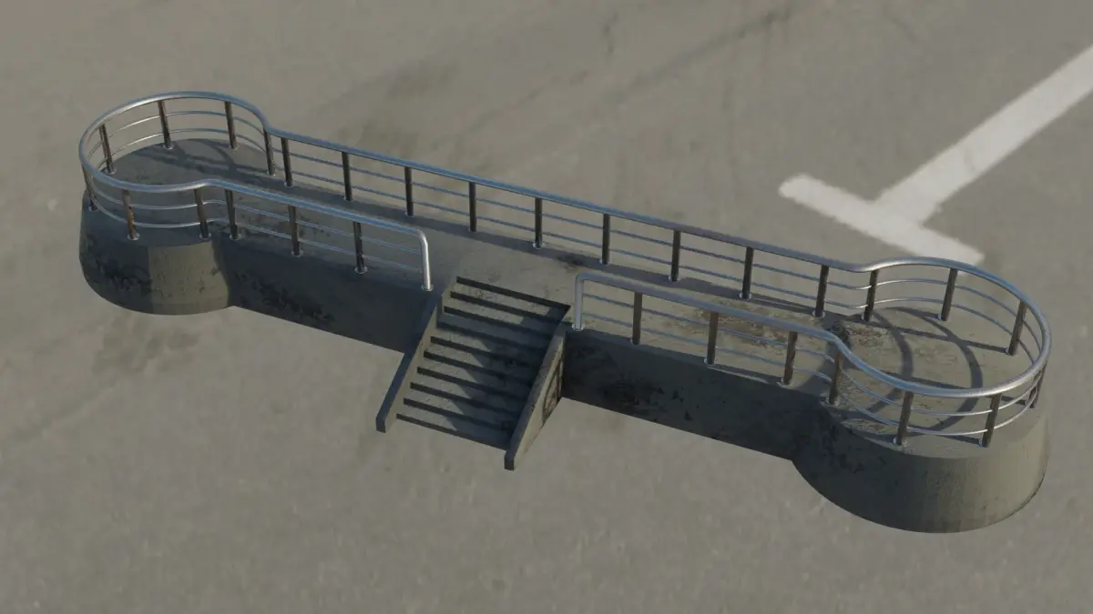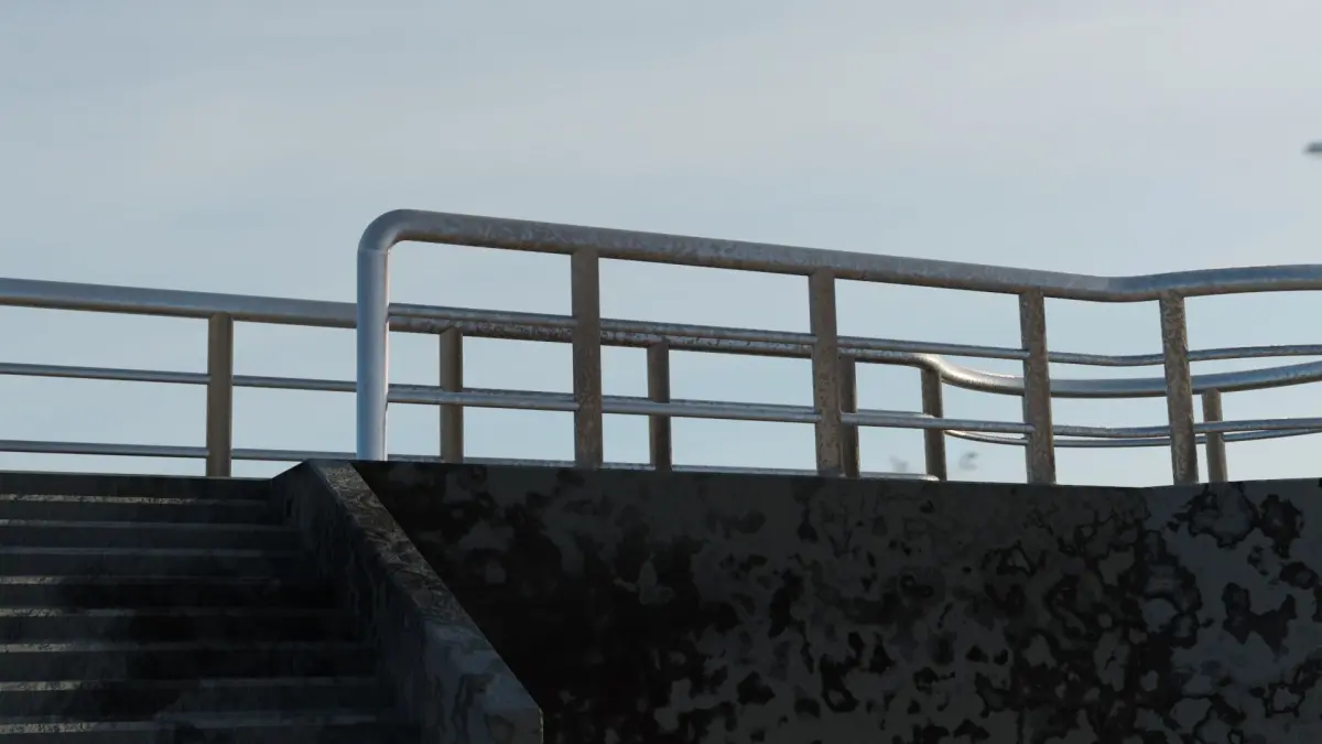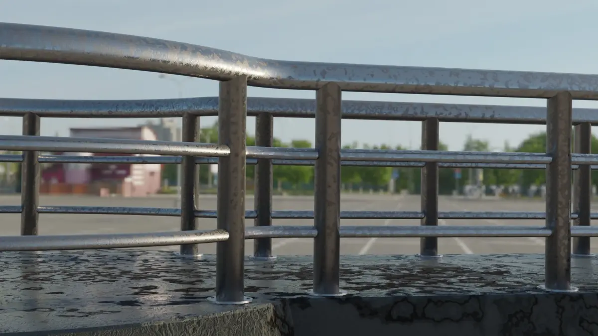 Posto de Observação com corrimão de metal, material procedural no Blender
