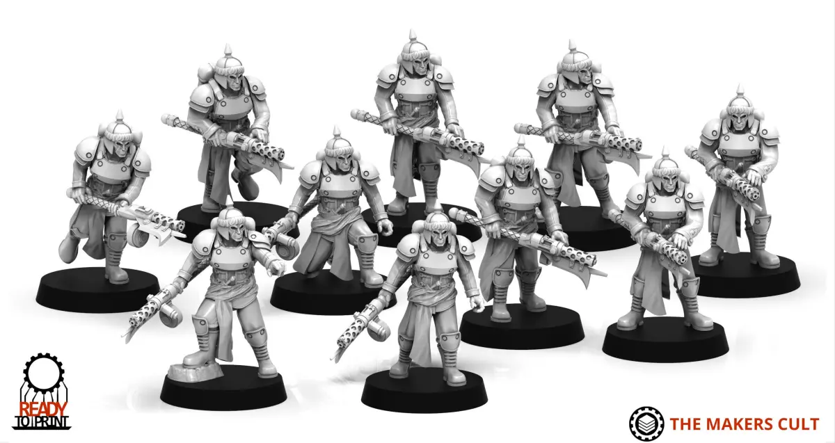 Obsidian Guard basic infantry. Comes with 10 poses, fully modular kit, cross compatible with other makers cult infantry.