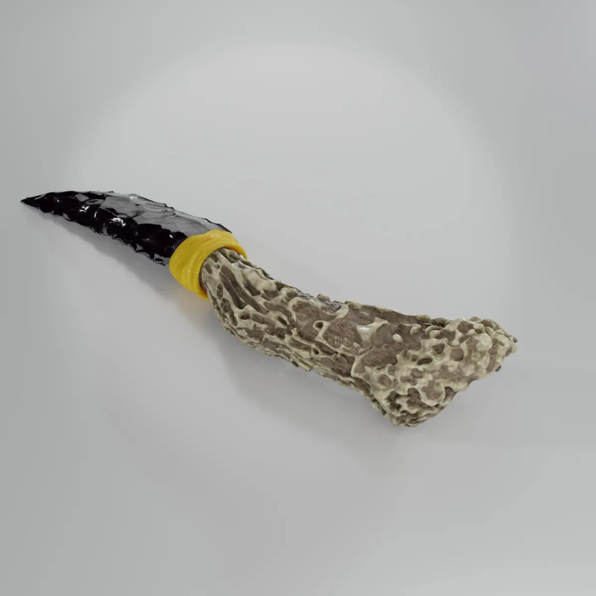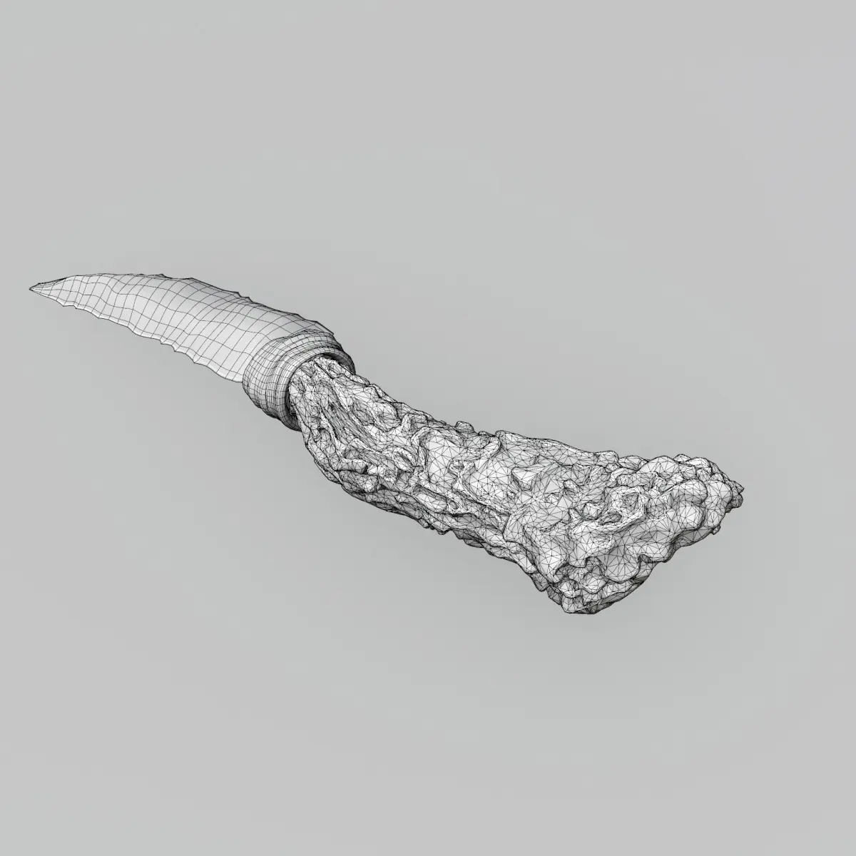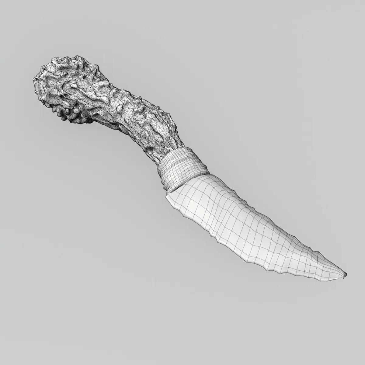 High detailed mid-poly obsidian knife. Mixed geometry, quad blade and wrapping, tris handle. Suitable for in-game cinematics or renders.