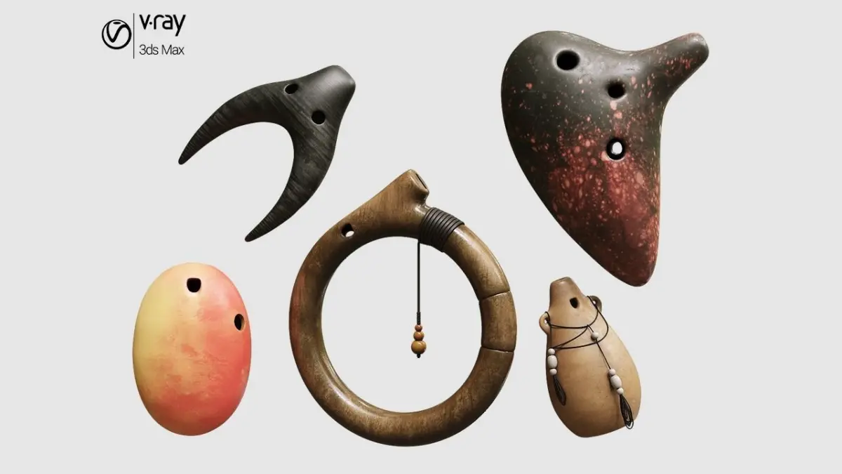 Ocarina Set, inspired by Legend of Zelda here I bring you a set of ocarinas, wind musical instruments. Ideal for setting interior or exhibition spaces.