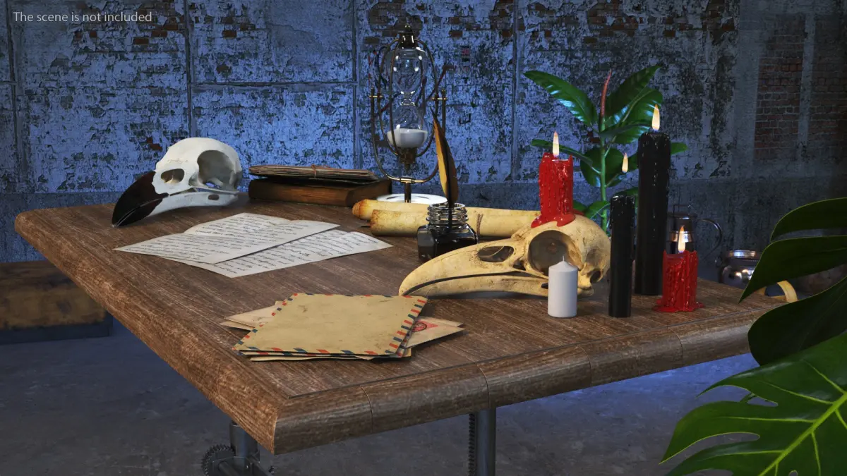 Occultists Writing Desk is a high quality, photo real 3d model that will enhance detail and realism to any of your rendering projects. The model has a fully textured, detailed design that allows for close-up renders, and was originally modeled in 3ds Max 2020 and rendered with V-Ray. Renders have no postprocessing! Assets in the scene are highly detailed and can be used standalone in any of your projects.