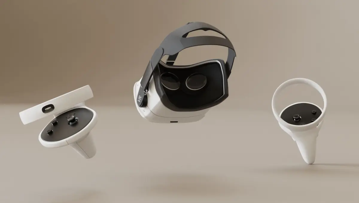 This is a 3d model of a VR Headset and Controller. The model was a depiction of Occulus Quest 2