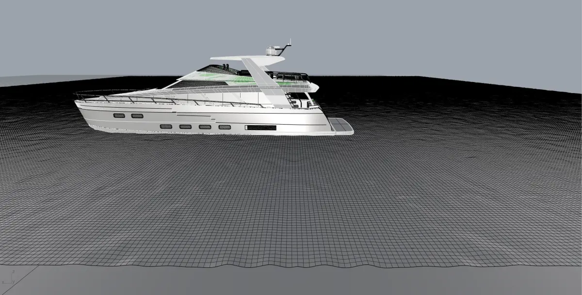 in the file there are:3d yacht modelthe bumped surface (waves),all vray map,ior index of water,blended material with white shadows on the top,stock vray for rhino lights,a sheet under the surface to emulate the color of the sea (you can modify color).