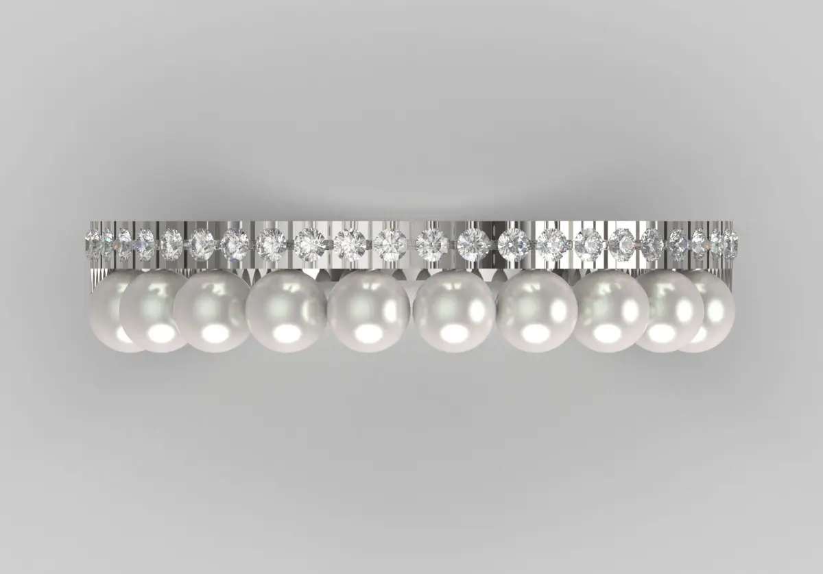 Opposite the pearls, a line of sparkling diamonds is set, adding a stunning contrast that catches the light and draws attention.