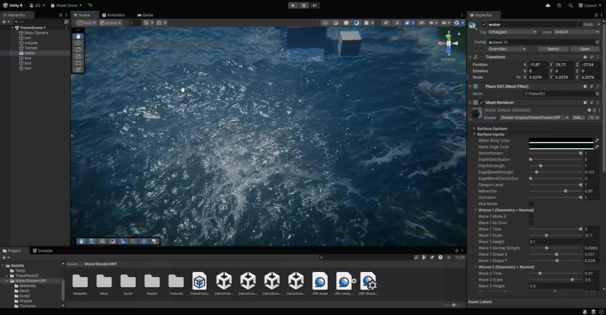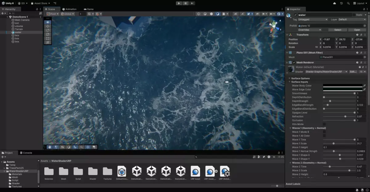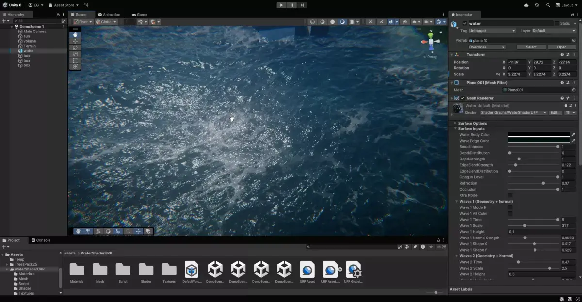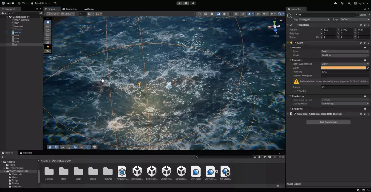 To enable/diable shadows from water - water mesh - mesh renderer - cast shadows.