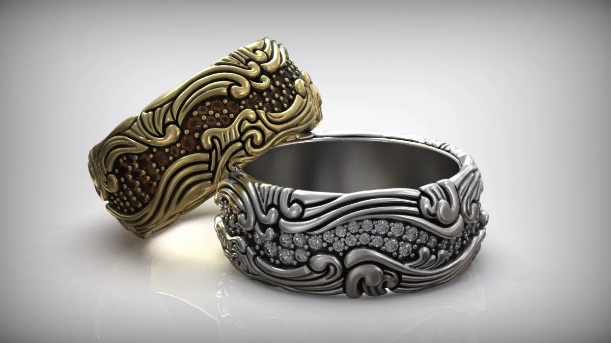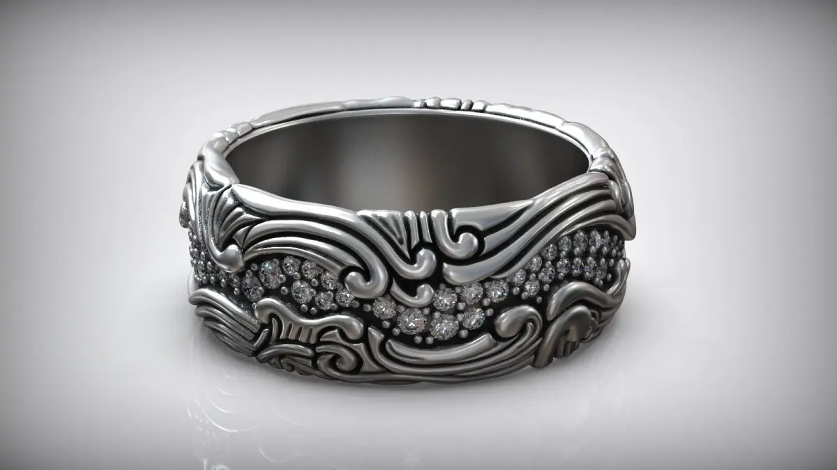 Size Ring - 8 US Weight Gold 14K - 13 grams Weight Gold 18K - 15.5 grams Sterling Silver 925 - 10.5 gramsGems:Diamond Round - 1.0 mm x 50 pcDiamond Round - 1.25 mm x 20 pcDiamond Round - 1.5 mm x 15 pc
