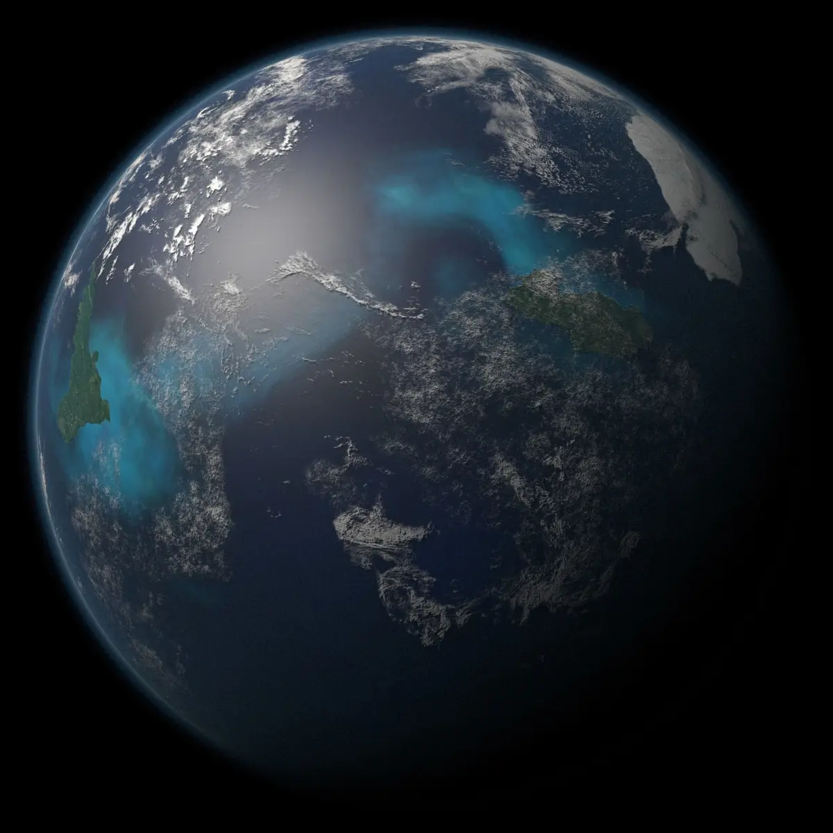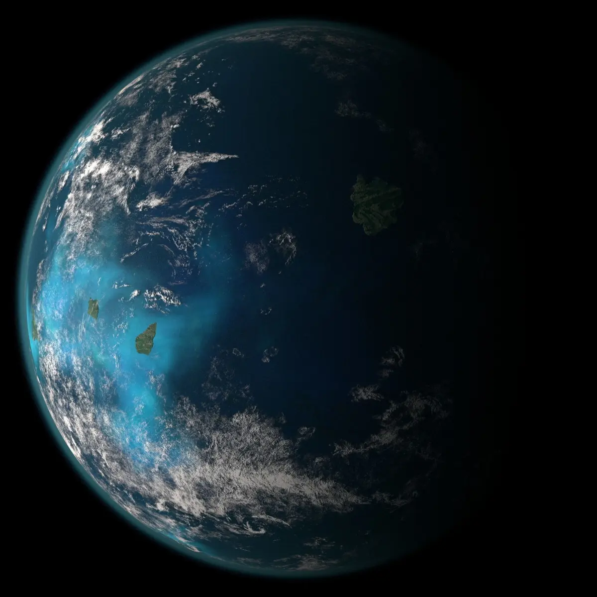 8000x4000 seamless, equirectangular planet texture of a generic ocean-like planet. Includes dedicated diffuse, bump, specular, cloud, cloud bump, and light maps all generated using Blender and Gimp. Two different light maps were created to resemble different kinds of planet population: urban and rural. These can be used individually or combined for varied lighting effects.