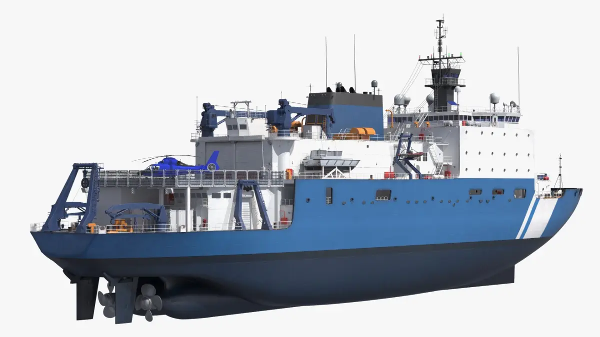 Oceanographic Research Ship with Helicopter on Water is a three-dimensional model of polar research icebreaker ship with helipad, designed for oceanographic and polar exploration.