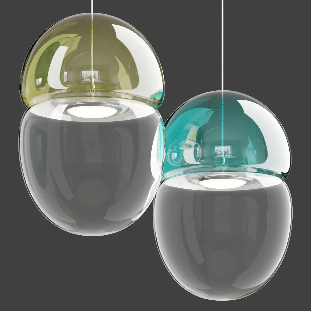 Dew + Drop is a pendant lamp made from two pieces of hand-blown glass.