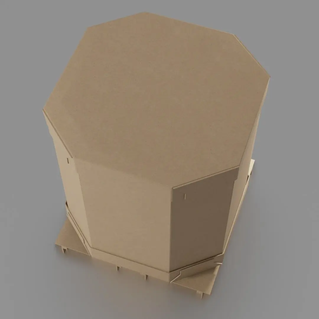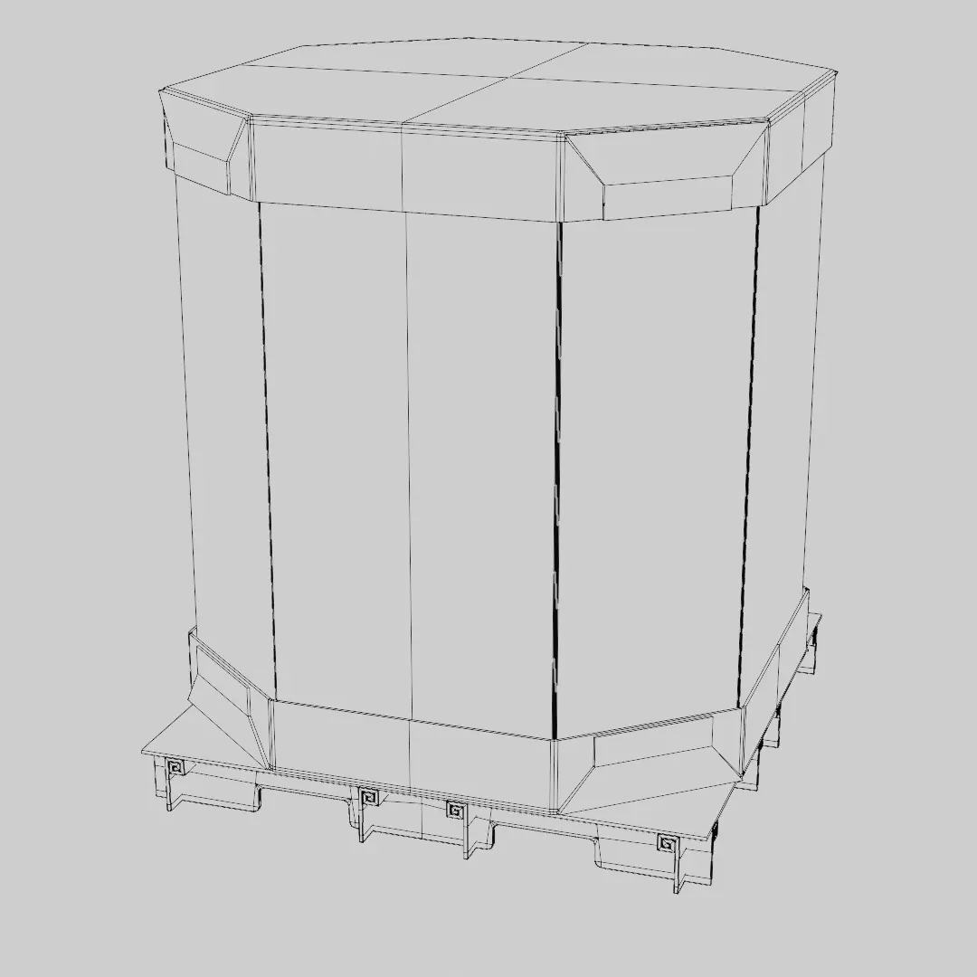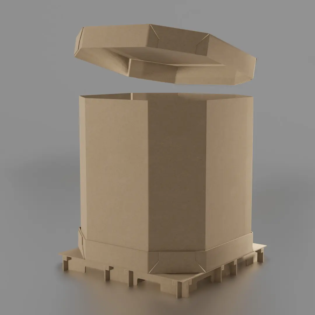 This highly detailed 3D model represents an Octabin, a large octagonal cardboard bulk container used in industrial logistics and packaging. The model includes a detachable lid, inner structure, and base pallet, allowing for full modular control and animation. Ideal for product visualizations, factory scenes, or packaging simulations.