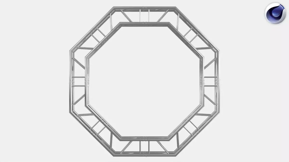 The geometry follows realistic truss proportions with consistent cross-bracing, making it suitable for both close-up shots and wide scene layouts. The octagonal shape offers a modern alternative to circular and rectangular arches, commonly used in luxury events, branding activations, expo entrances, and contemporary stage setups.