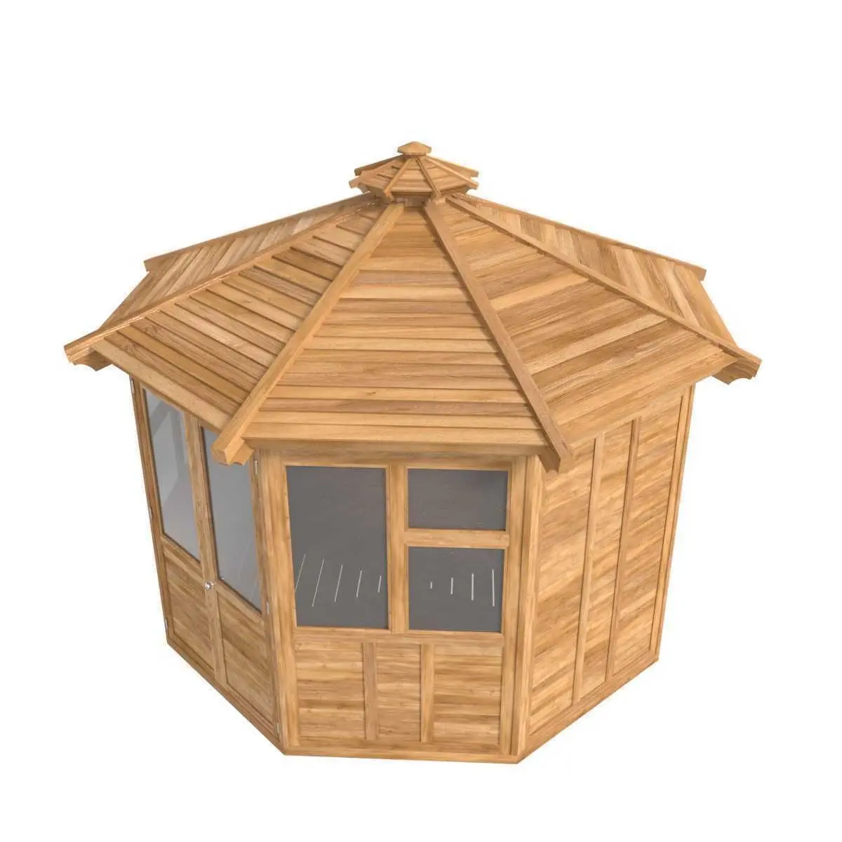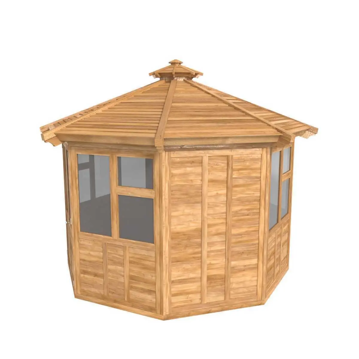 This is high poly wood house 3d modelRendered in corona renderStack not collapsed.3ds, fbx, obj files exported without mesh smooth modifier.No hidden objectsAll objects groupedAll objects have materialsNo missing textures and texture paths clearedAll objects have 1:1 scaleFile have only model, no lights or camerasUnit scale cm 1:1Model optimized for rendering in 3ds max and corona, in other programs and renders may adjust materialsOctagonal Sunroom Gazebo Forever Redwood The Octagonal Sunroom is built to order. Yes, anyway you want. Sleep on it, dream big and ring us in the morning with your plans! You will have a dedicated design engineer attached to your project so you can fine tune as needed until you are sure everything is just the way you want.8 sidesdouble door with glasswood roofsize 400x400x325 cm6394 polys