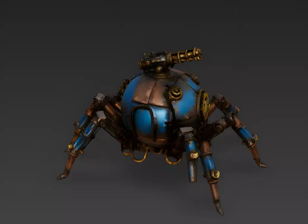 The Overall ConceptThis asset is a marvel of retro-futuristic engineering. It is a multi-legged steampunk Spider Tank, perfect as a high-tech boss, an autonomous guardian, or a mobile artillery unit for Victorian fantasy or alternate-history game worlds.