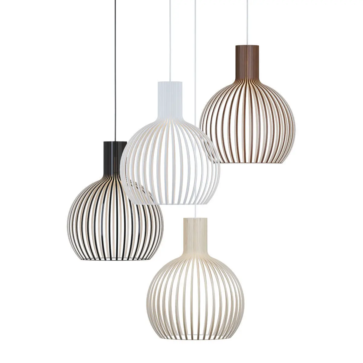 Secto Design luminaires are handmade in Finland from form-pressed Finnish birch. The lamps have clean Scandinavian silhouettes, and the wooden surface gives them a warm and appealing character. Secto lamps are designed by architect Seppo Koho who wanted to develop a softly filtering light that doesn’t dazzle but invites people to come closer. Secto lamps emphasize space and environment by creating a unique atmosphere and feeling of closeness.