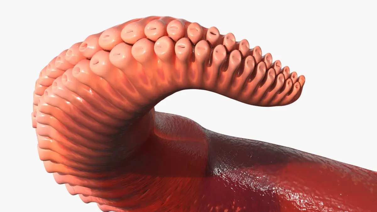 Octopus Arm Marine Animal Orange is a three-dimensional model of flexible limb of an octopus, characterized by a muscular hydrostat structure and rows of suction cups.