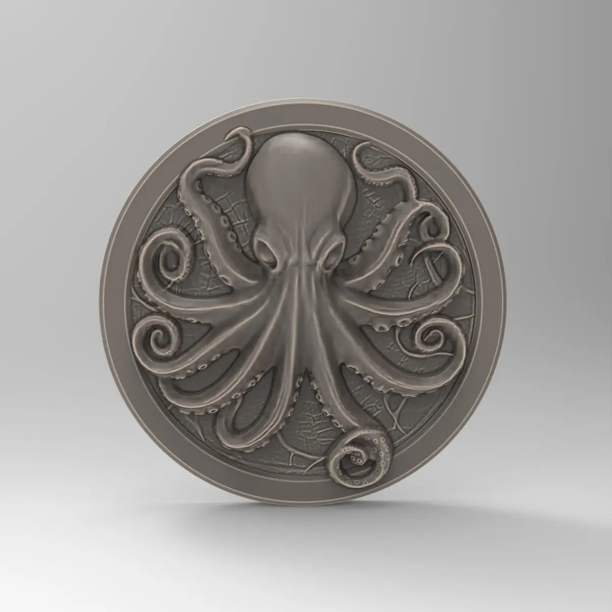 • Mesmerizing Octopus Coin 3D Model: Perfect for adding a marine touch to your CNC or 3D printing projects.