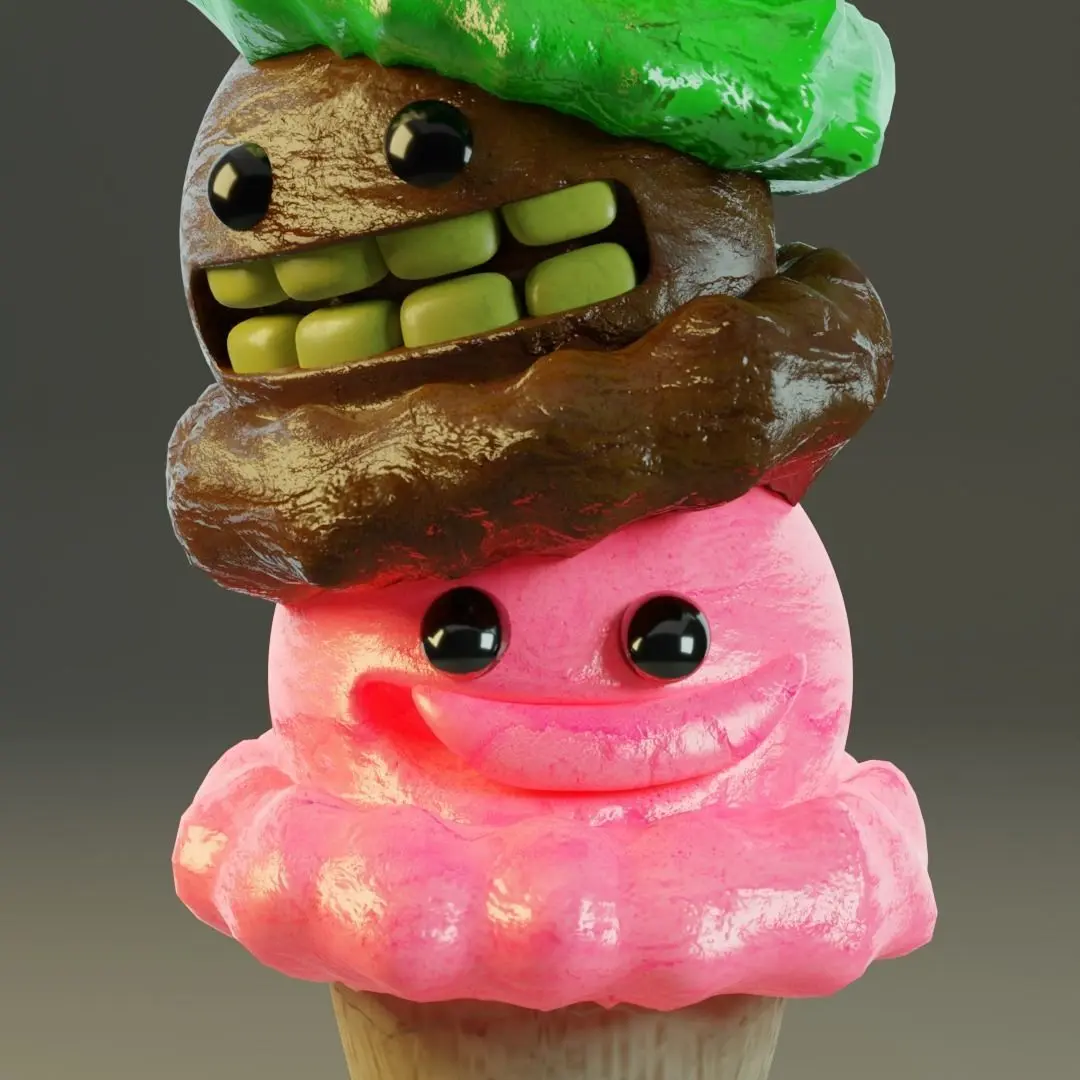 In the project folder you will find the entire scene in the formatsblender, dae, fbx, objseparately each octopus in fbx in hornseparate folder with textures for each ice cream and waffle(base color, heights, normals, reflections)