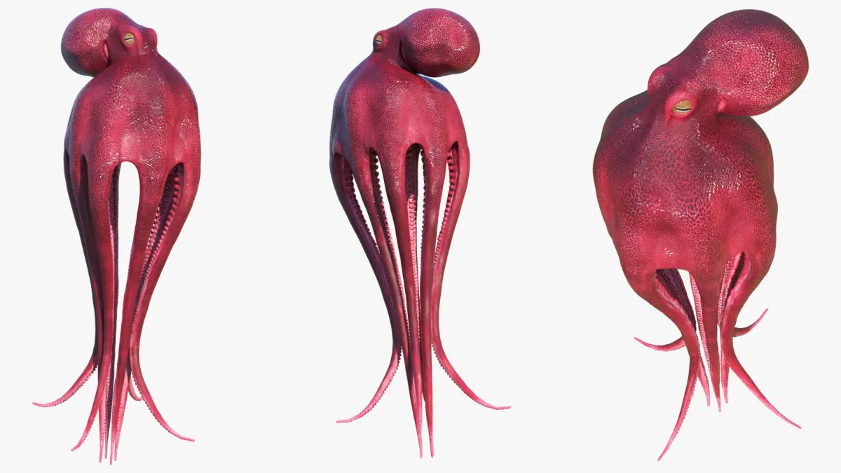 Octopus Vulgaris Rigged for Blender is a three-dimensional model of a striking marine creature, capturing the intricate details of an octopus in a vibrant red hue.