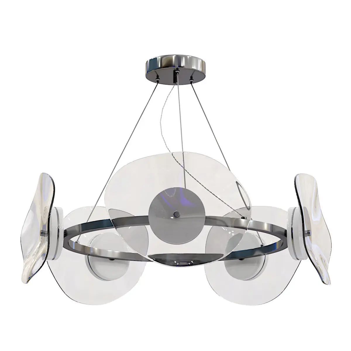 The stylish pendant chandelier of the Fluent series is an elegant glass LED model. The smooth shape of the glass is made in a smoky color. Soaring Fluent lamps are great in modern, neoclassical, Scandinavian interiors. From wall lamps and suspensions you can make spectacular compositions and installations.