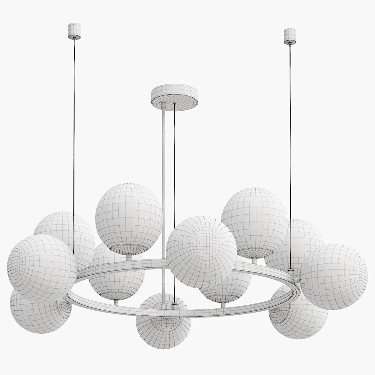 Functional and stylish Tovi line with transparent glass balls on the base. The lamps look incredibly light and airy. The set of chandeliers includes 2 types of base - with installation on the main bowl and with the use of additional fasteners. The combination of different diameters allows you to create beautiful compositions and illuminate large spaces.