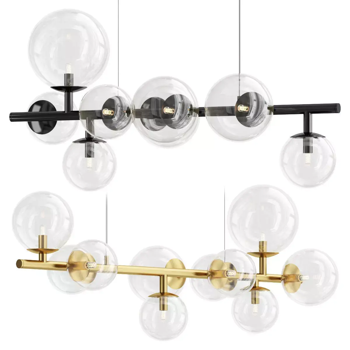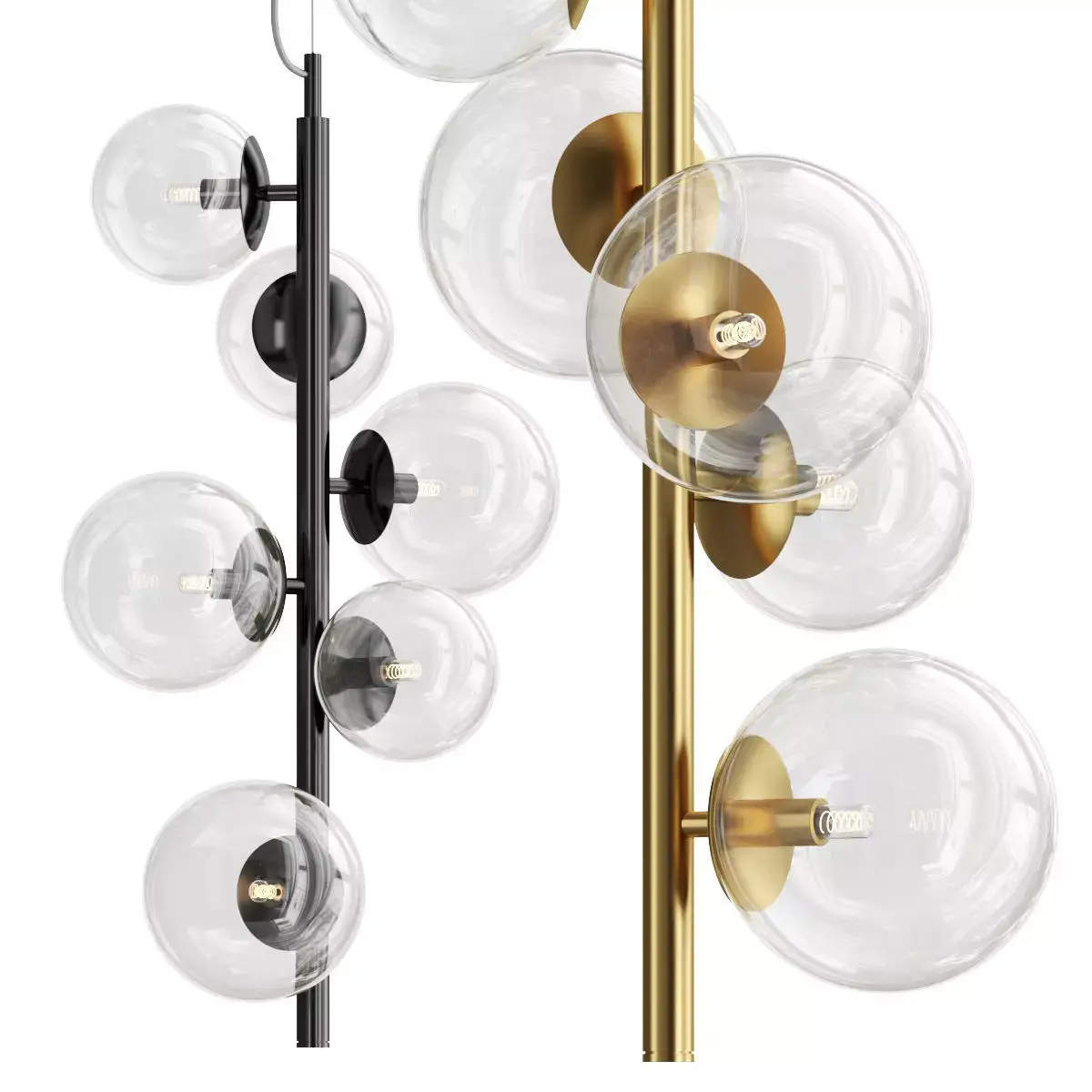 The Tovi collection is designed to create a sense of whimsical elegance and sophisticated modernism. The transparent glass globes, which house the light sources, create a mesmerizing effect of scattered light, adding a magical and inviting ambiance to any space. These fixtures are perfect for creating a unified lighting scheme in a large, open-plan interior, with the floor lamp for ambient lighting, the wall sconce for accenting, and the chandeliers for making a grand statement.